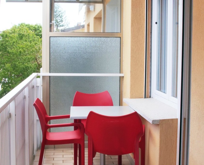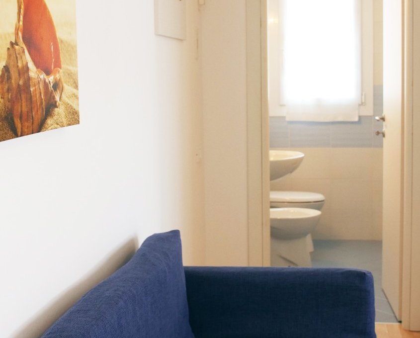 Apartment type B – Small two-room flat composed by a kitchen-dining room with a single sofabed, bedroom with king-size bed, bathroom with shower, balcony. 2/3 guests max.