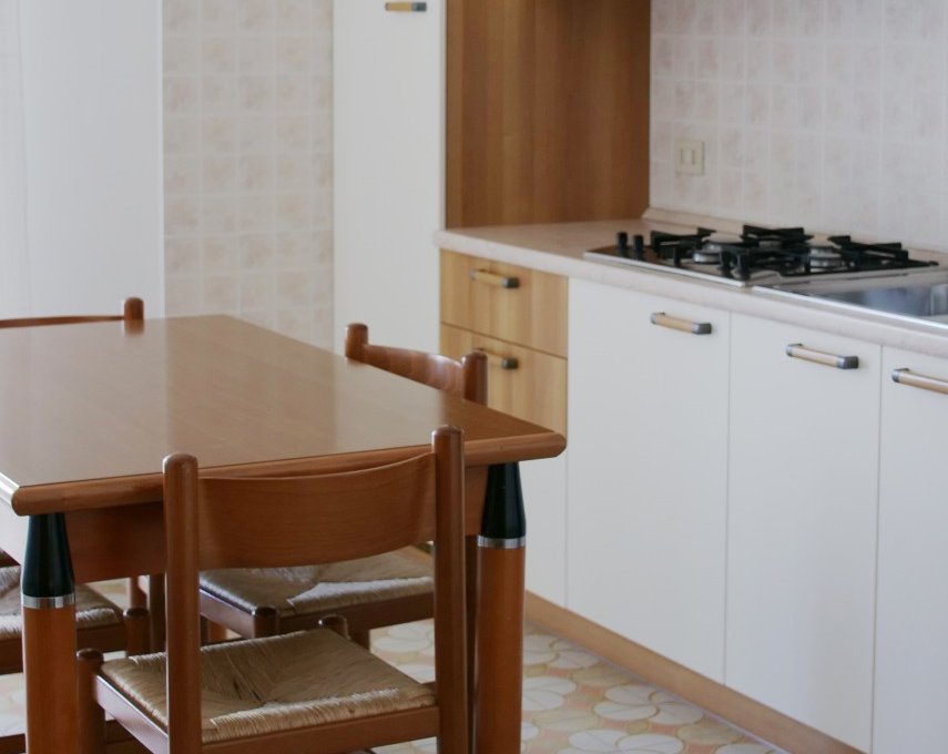 Apartment type B – Large two-room flat composed by a kitchen-dining room with a sofa, a single bed, balcony or garden. 4 guests max.