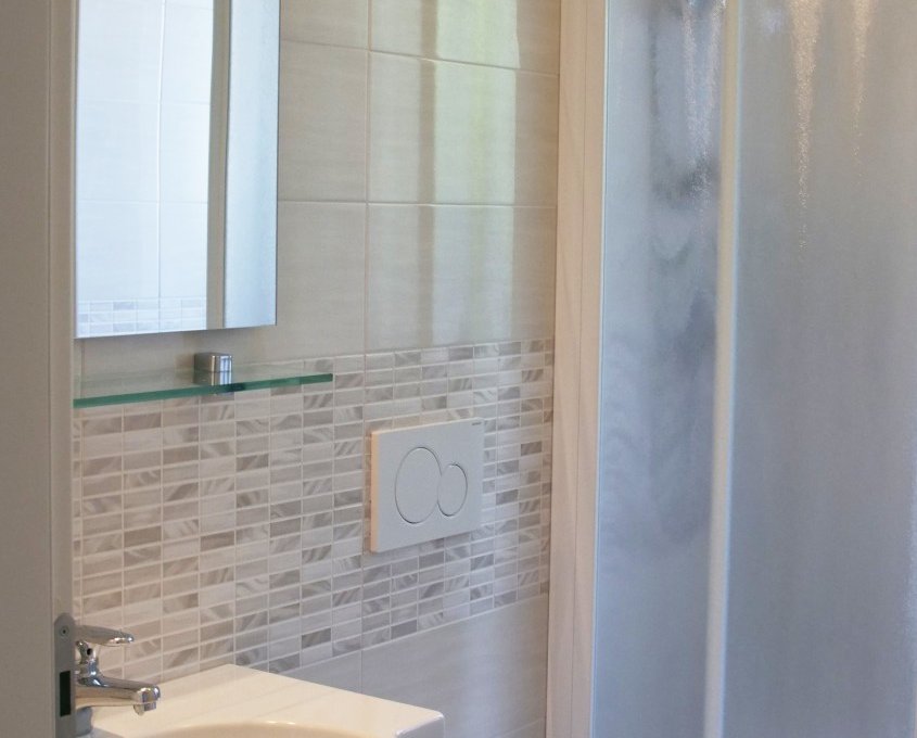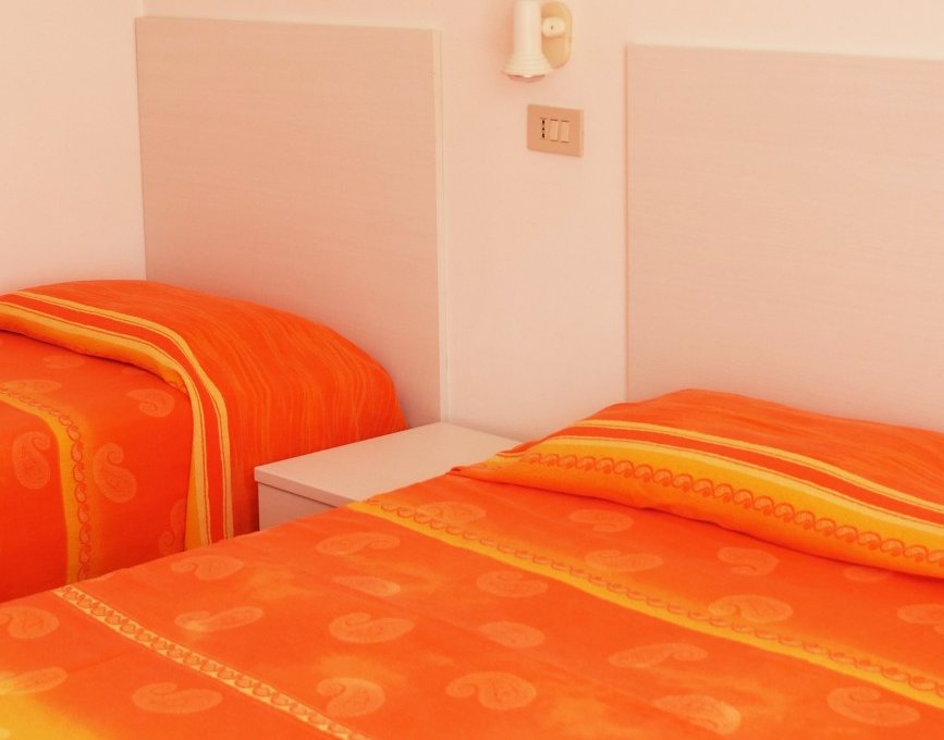 Apartment type B – Small two-room flat composed by a kitchen-dining room with a single sofabed, bedroom with king-size bed and single bed, bathroom with shower, balcony. 2/3 guests max.