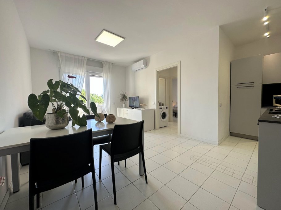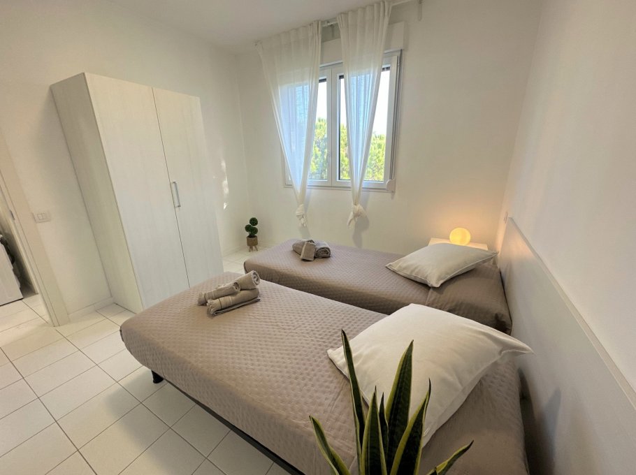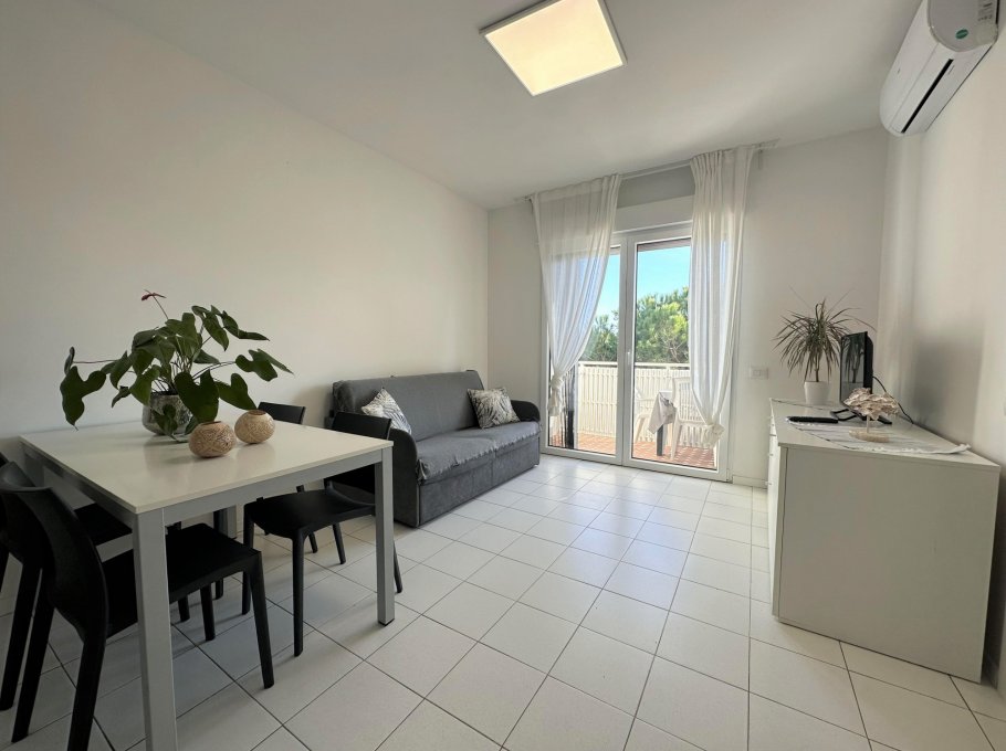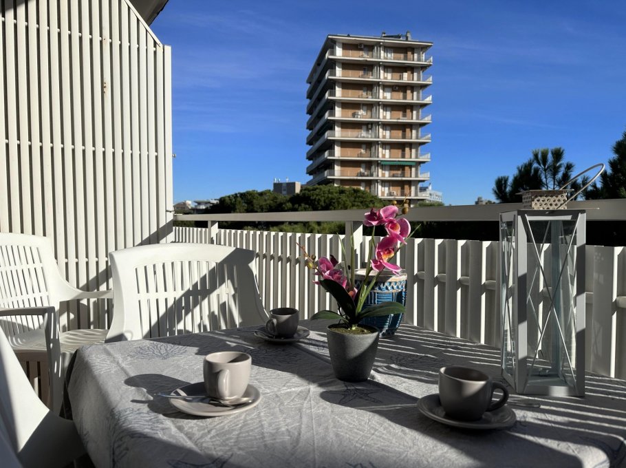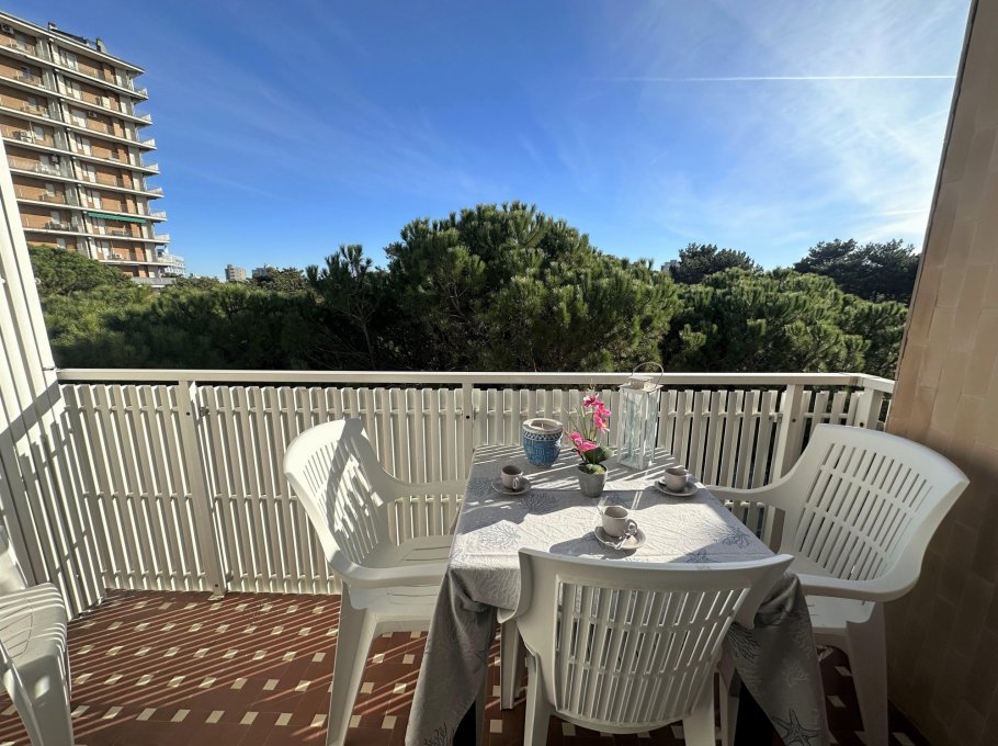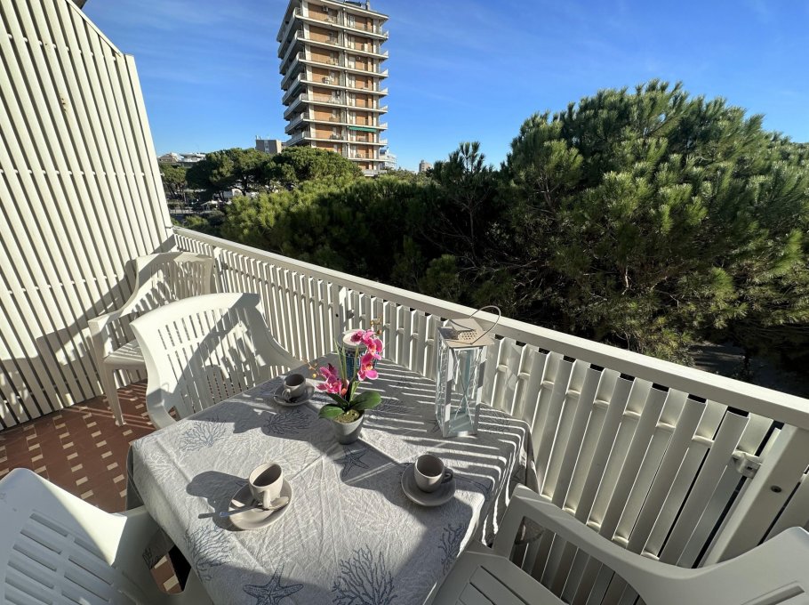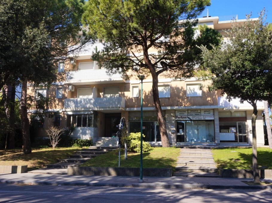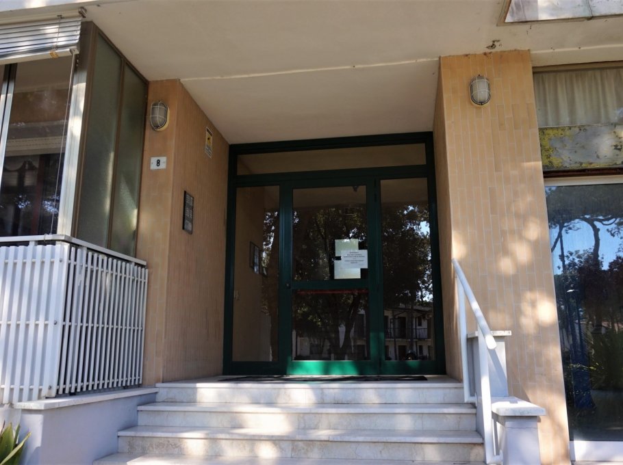 Three-storey building (no lift) just a short walk from the original centre of Lignano Pineta: characterised by a long row of shops, commercial premises, bars, restaurants, pizzerias and ice cream parlours.