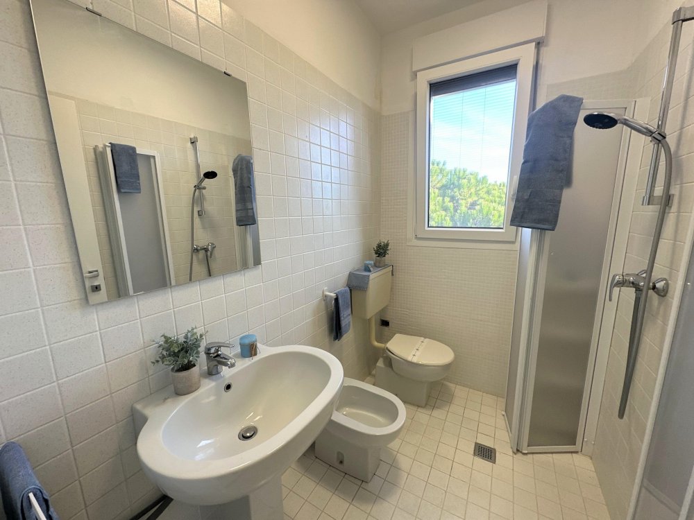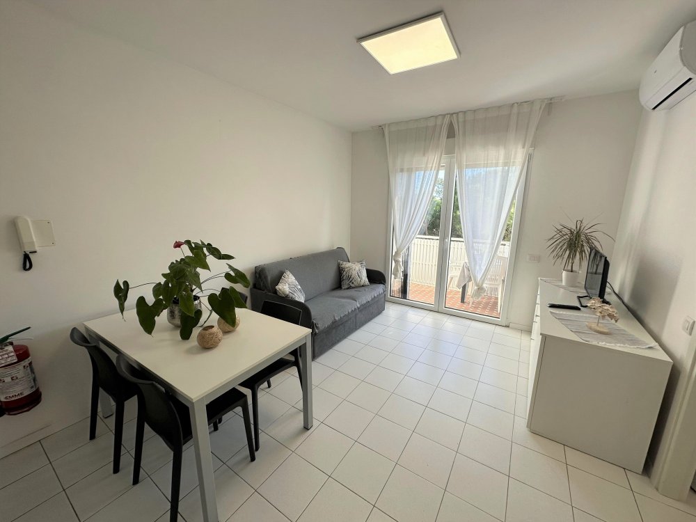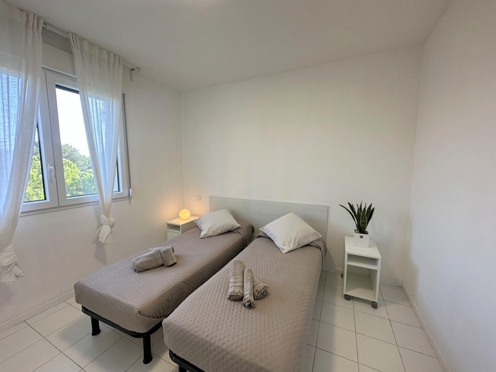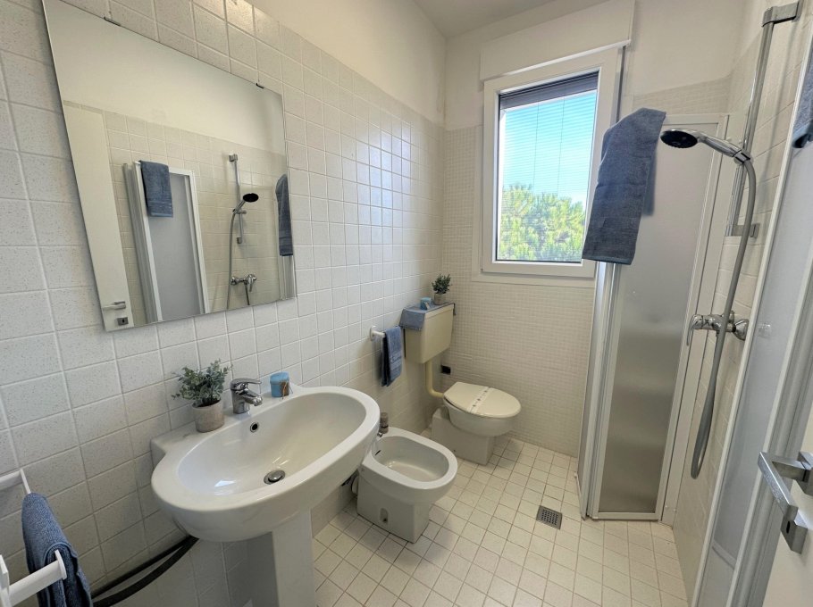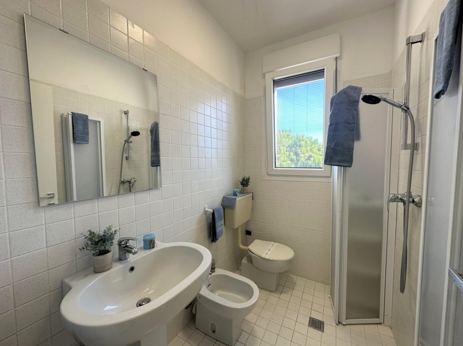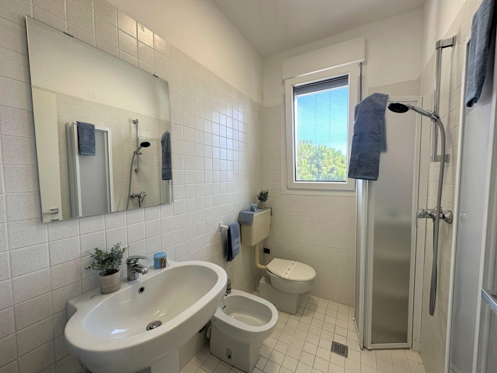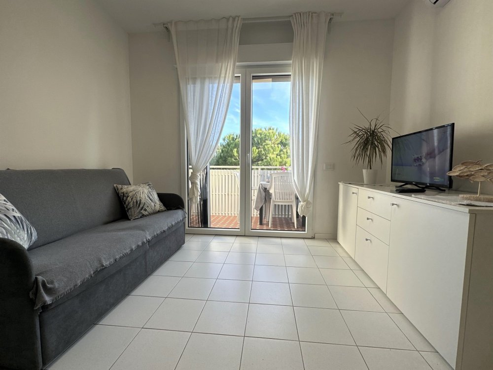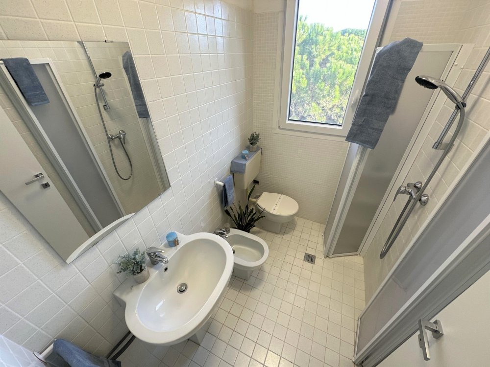 Three-storey building (no lift) just a short walk from the original centre of Lignano Pineta: characterised by a long row of shops, commercial premises, bars, restaurants, pizzerias and ice cream parlours.