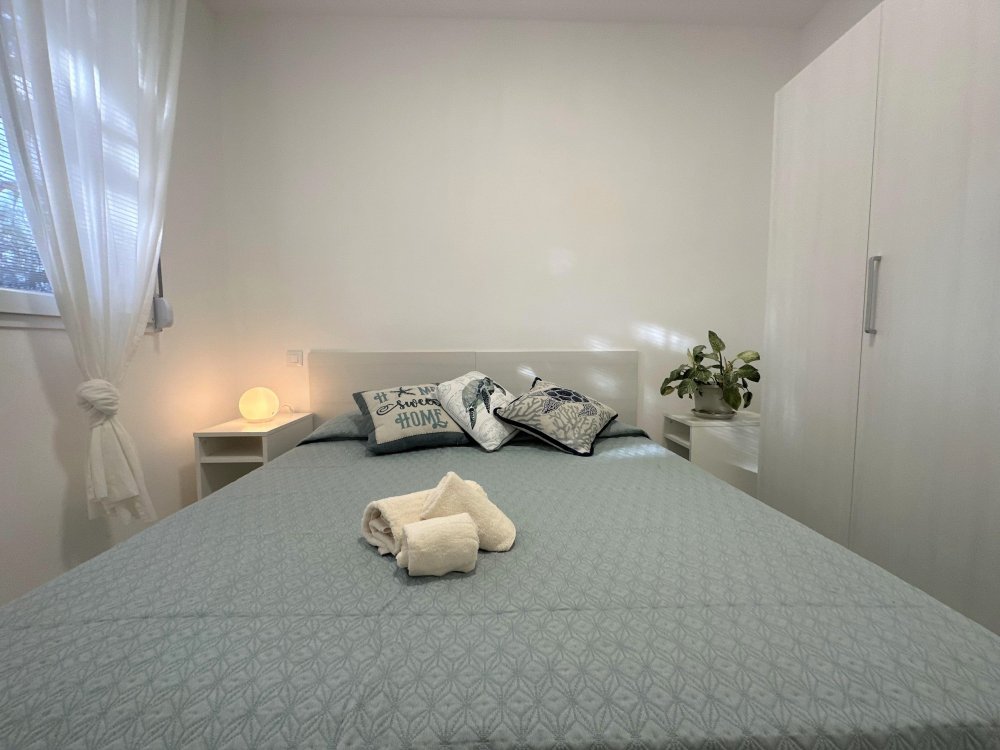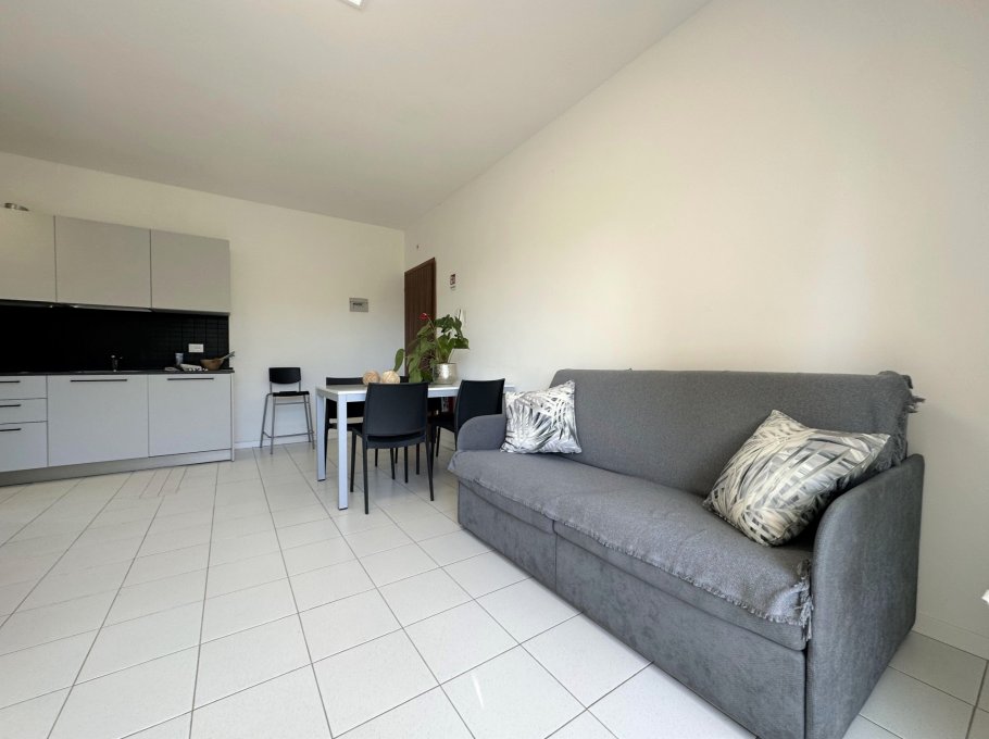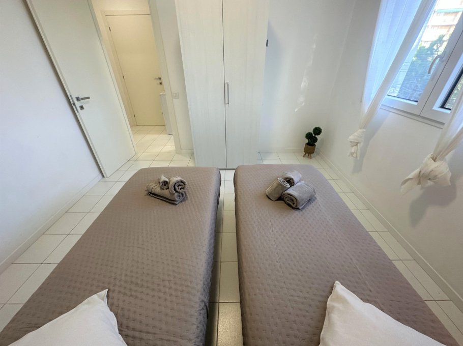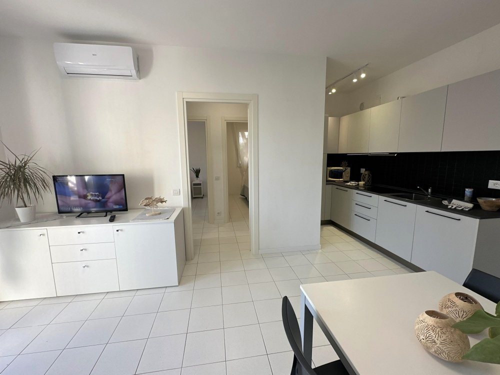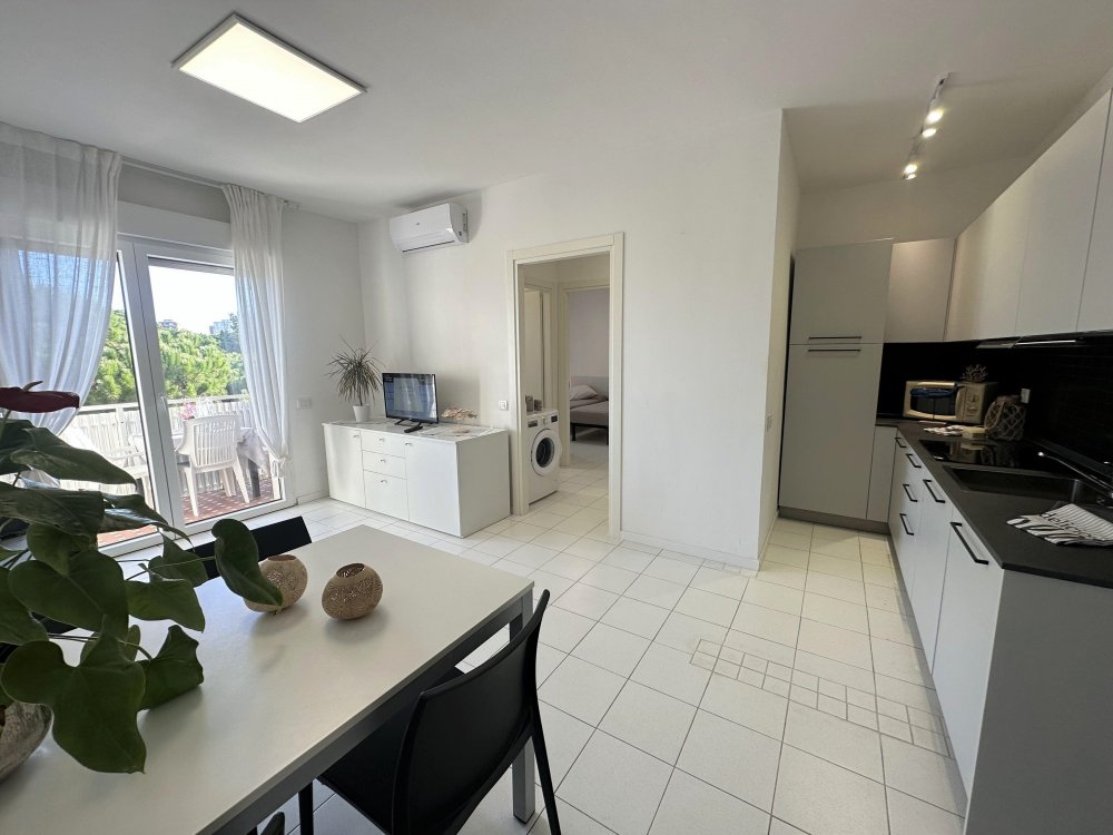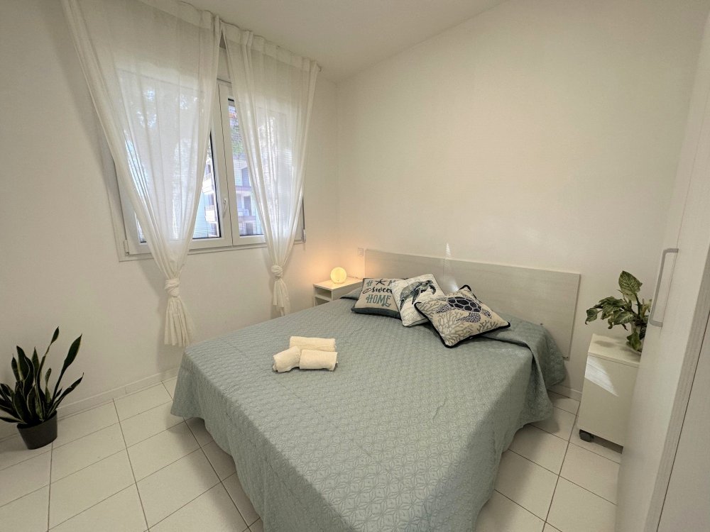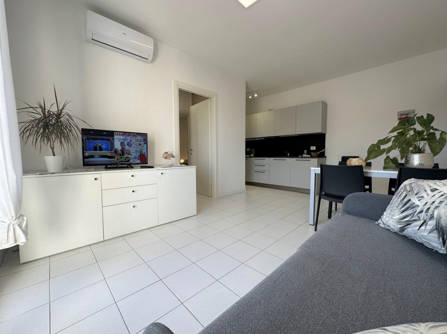 Three-storey building (no lift) just a short walk from the original centre of Lignano Pineta: characterised by a long row of shops, commercial premises, bars, restaurants, pizzerias and ice cream parlours.