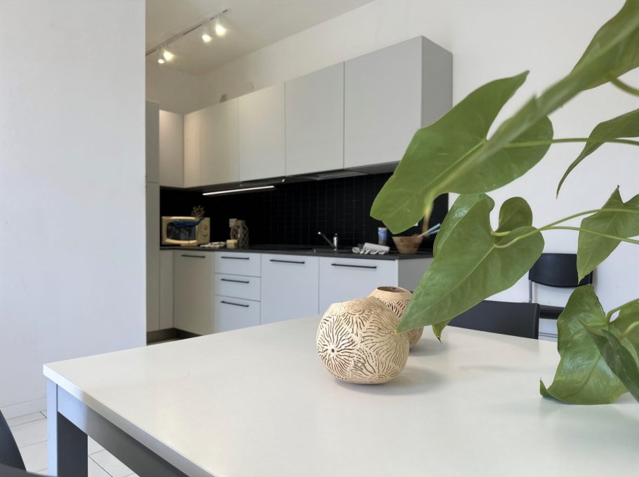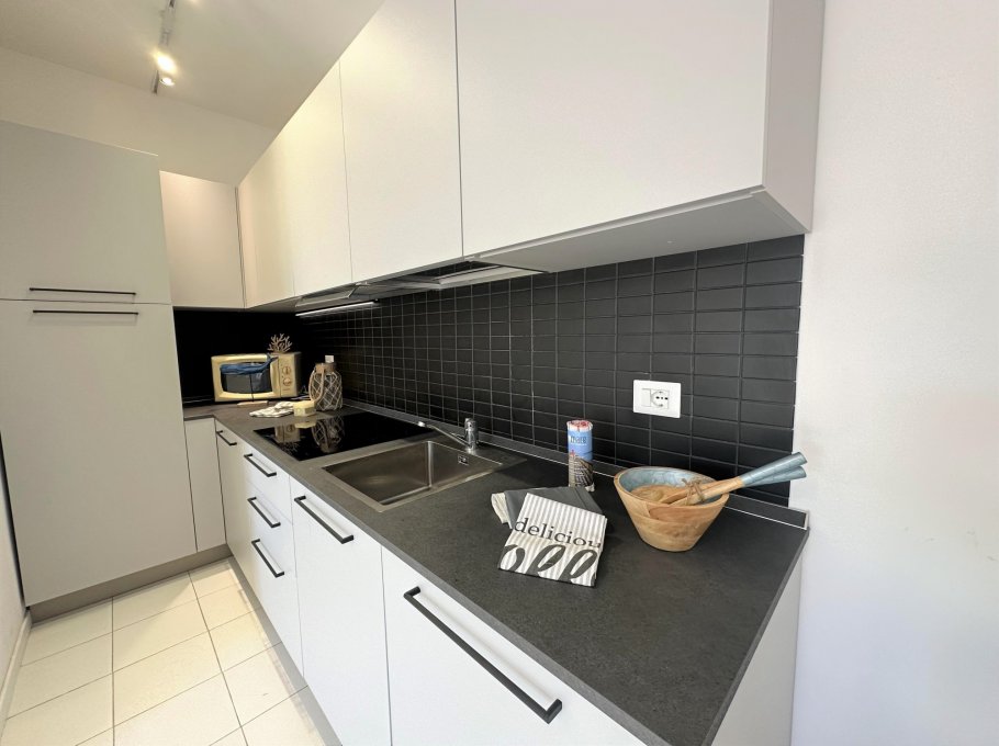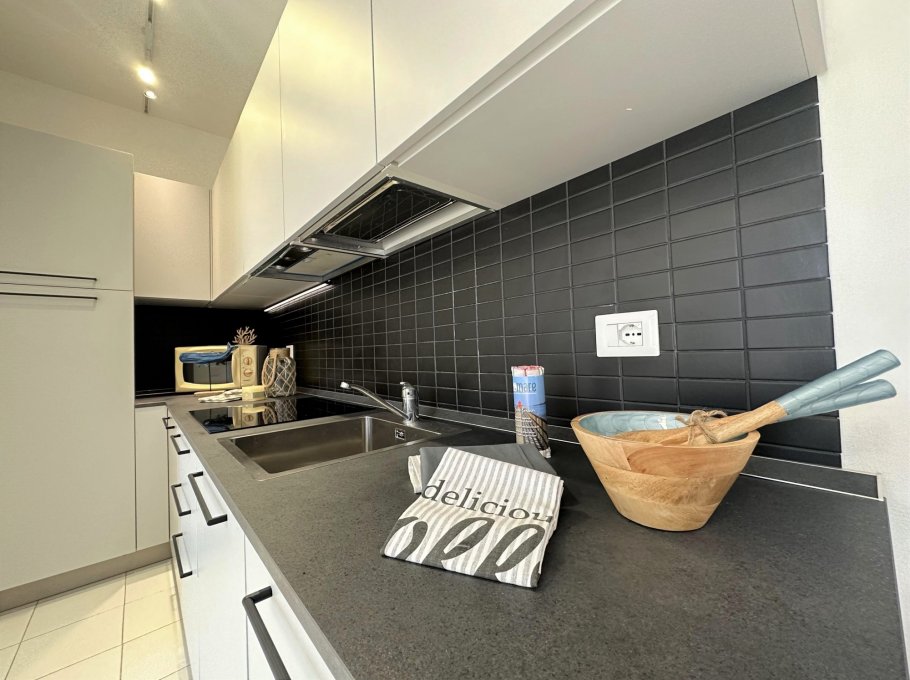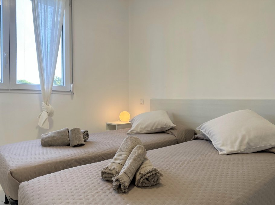 Apartment located on the third floor (without lift), composed of a living room with sofa bed, kitchenette, terrace equipped with table and chairs. Double bedroom, bedroom with two separate beds, bathroom with shower (curtain).