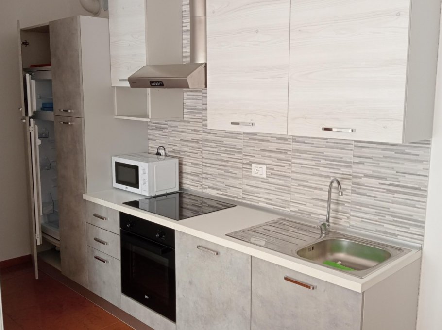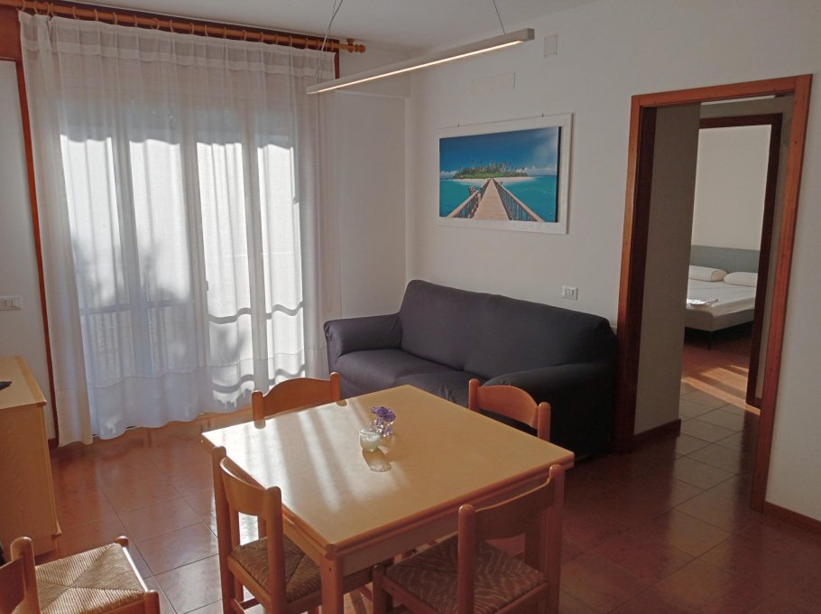Apartment on secondo floor composed by: one double bedroom + single bed, one double bedroom, living room with sofa, kitchen, bathroom with box shower, terrace, tv, washing machine, air conditioned, parking place.
