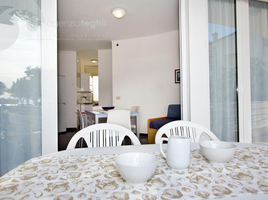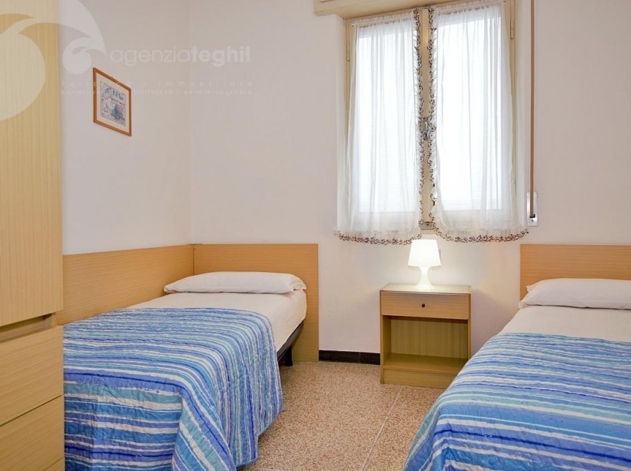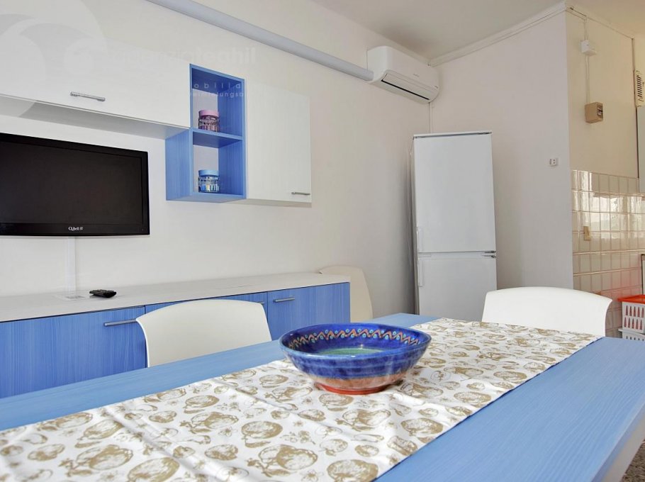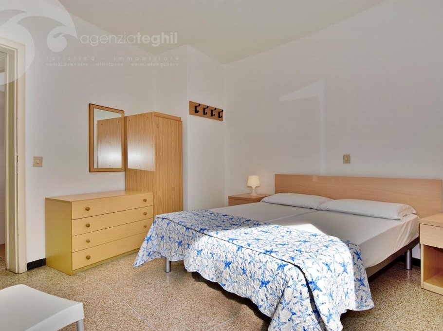 Type C: 4/5 persons - Apartment on the 1st floor (no elevator) consists of a double bedroom and balcony, a two bedded room, living room with sofa bed, television with satellite connection and terrace, kitchenette with refrigerator 240 lt. (separated freezer), windowed bathroom with shower-box. Apartment equipped with uncovered parking space and air conditioning.