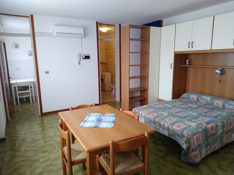 CENTRALE, NEXT TO THE CENTER AND PROMENADE-STREET, CA. 150-200 M. FROM THE BEACH - APARTMENTE TYPE A3/ONE-ROOM FLAT AT THE 2cd FLOOR WITH LIFT - NUMBERED PARKING PLACE, AIR CONDITION, TV - WASHING MACHINE -