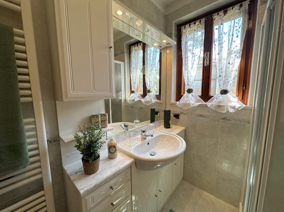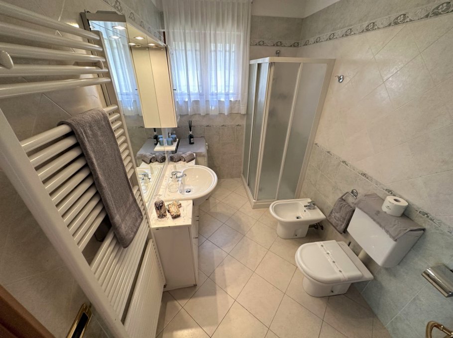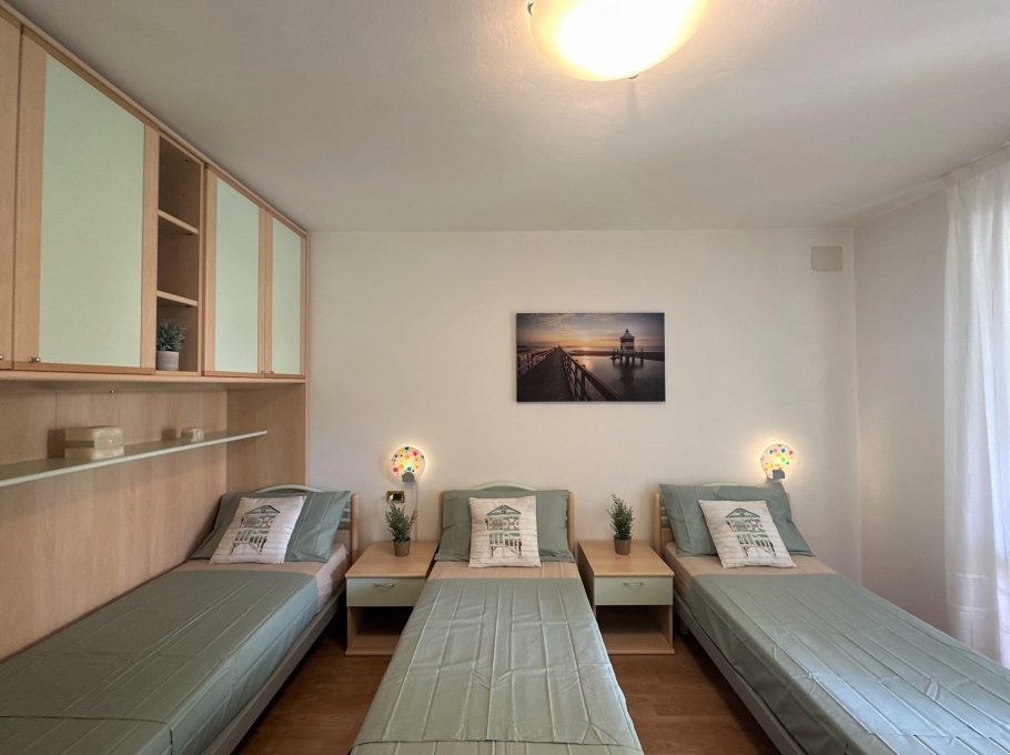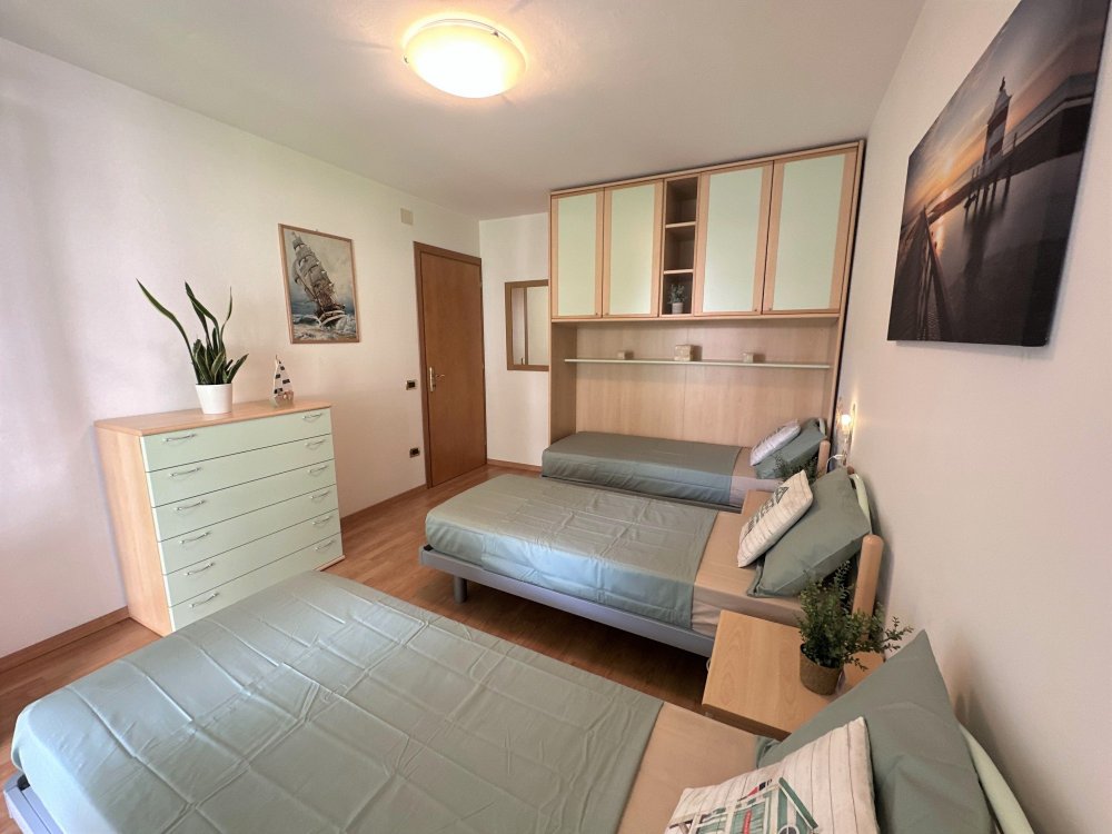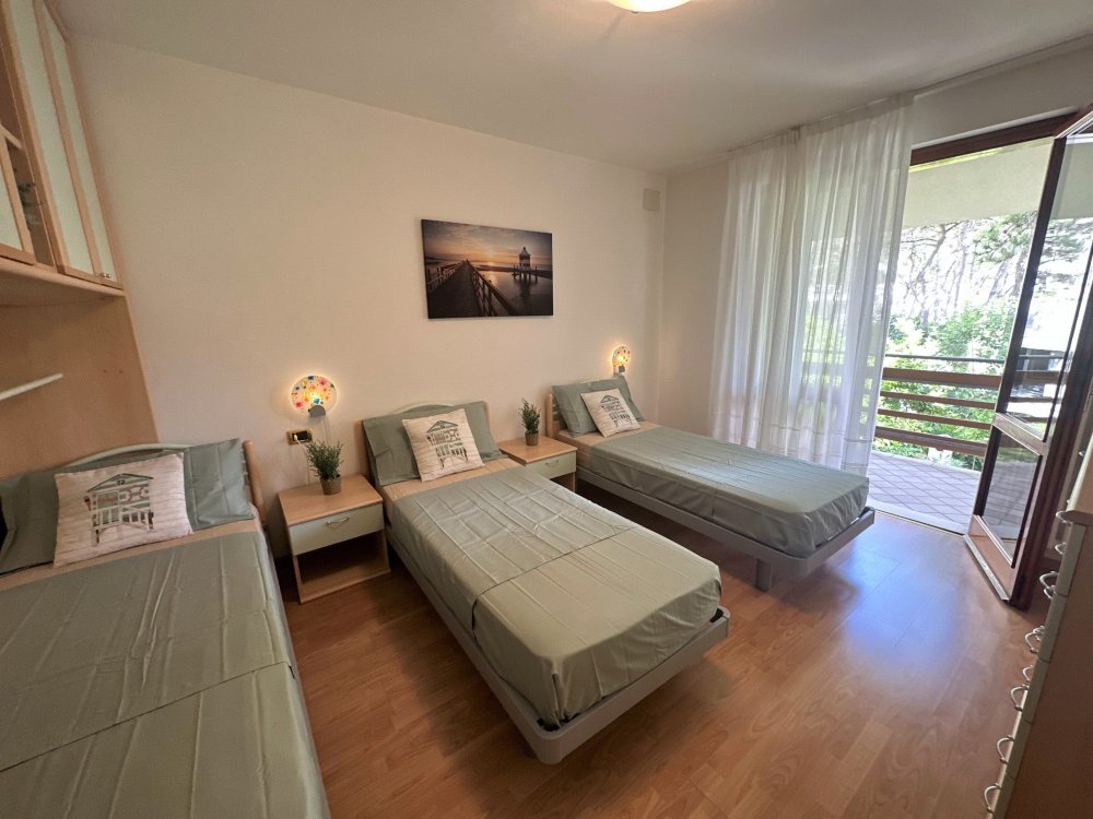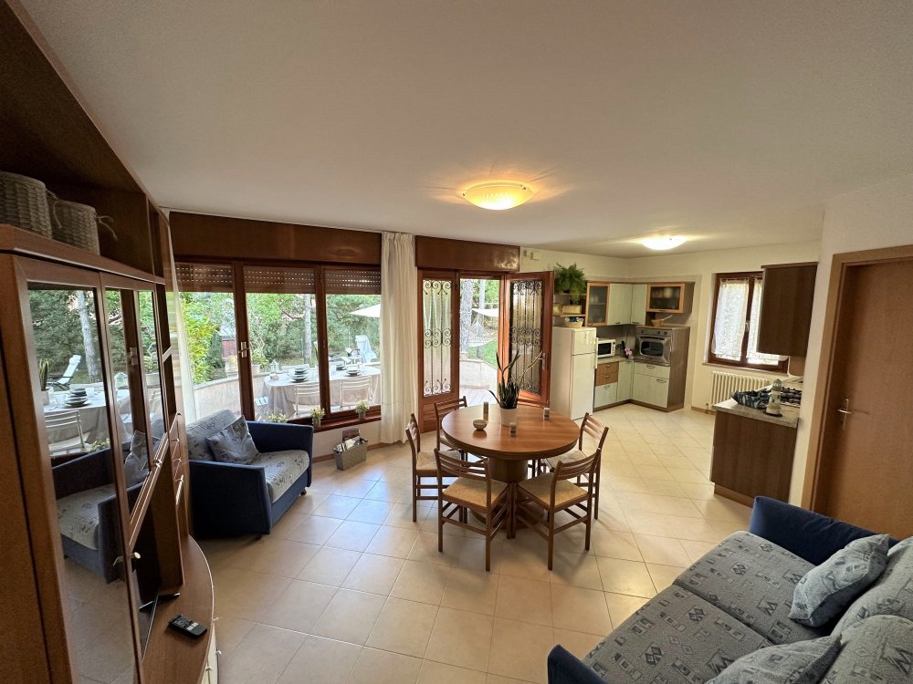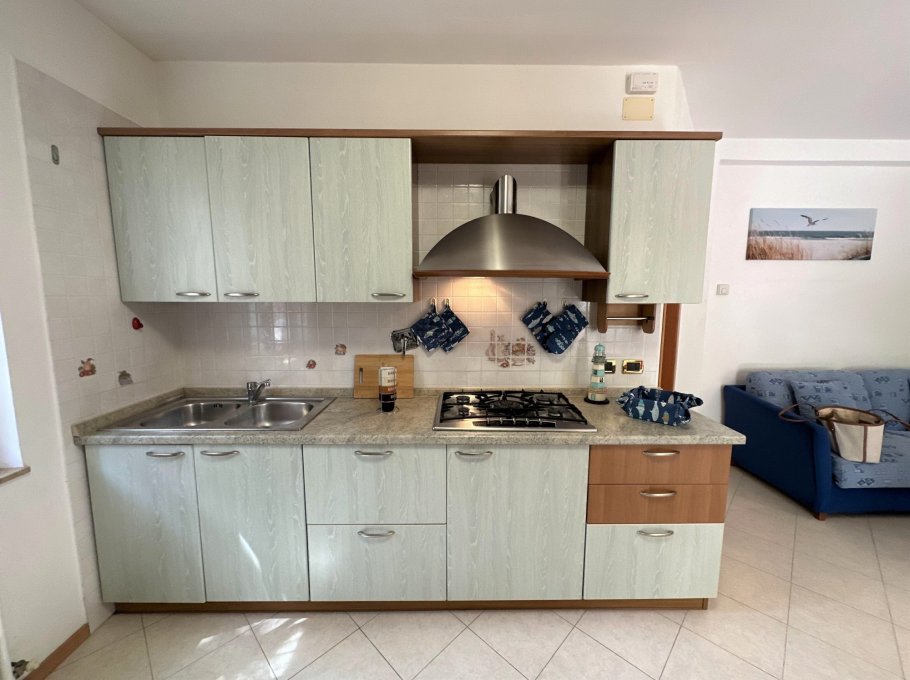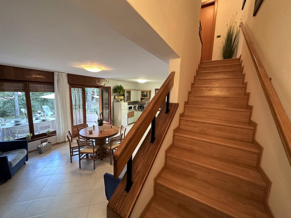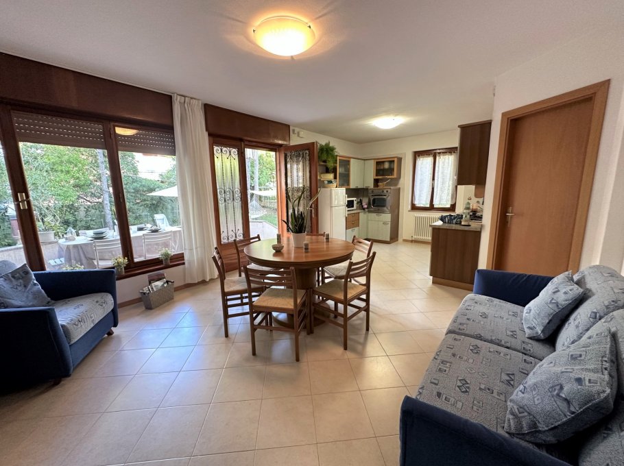 Terraced house in Lignano Pineta, in a quiet area just steps from the beach, on two levels. The ground floor features a spacious living room and kitchenette, a bathroom with a window and shower, and a closet.