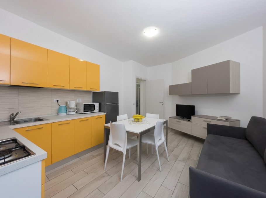 Residential building on the beach promenade in the centre of Lignano Sabbiadoro, just in front of Terrazza Mare. It's provided with lift and 1 parking place per apartment in the garage (only for normal cars. No SUV and minibus). All the apartments are equipped with modern furniture, security door, SAT-TV, air conditioning and heating, safe, microwave oven, kettle, washing-machine and dishwasher, hairdryer, filter coffee machine and big refrigerator. 1 “Light WI-FI free” access included per apartment (for 3 devices at a time. No streaming no download).