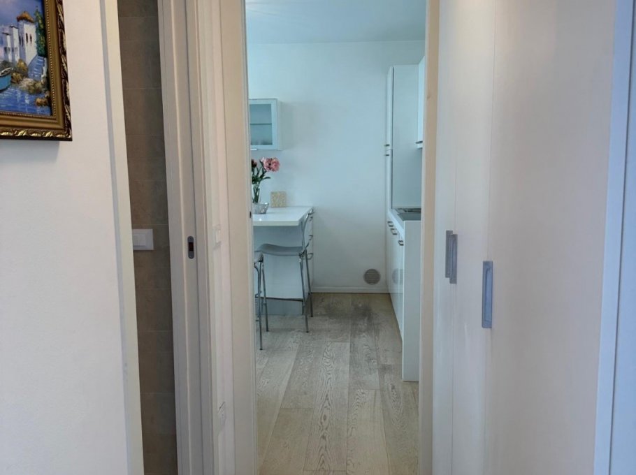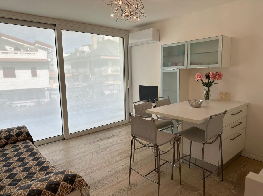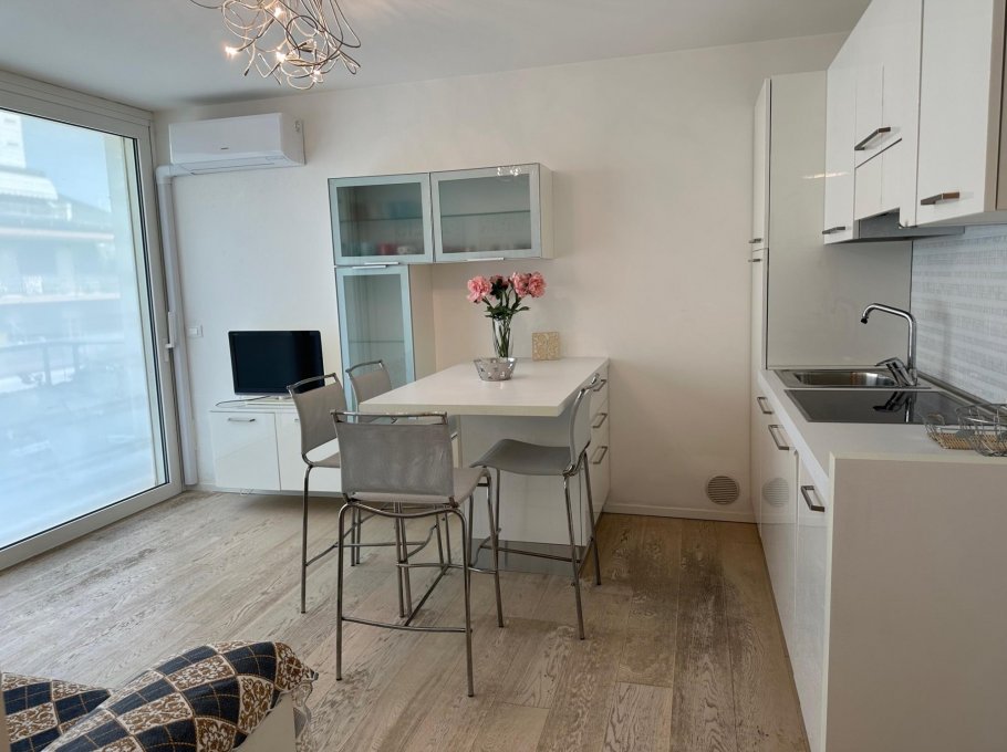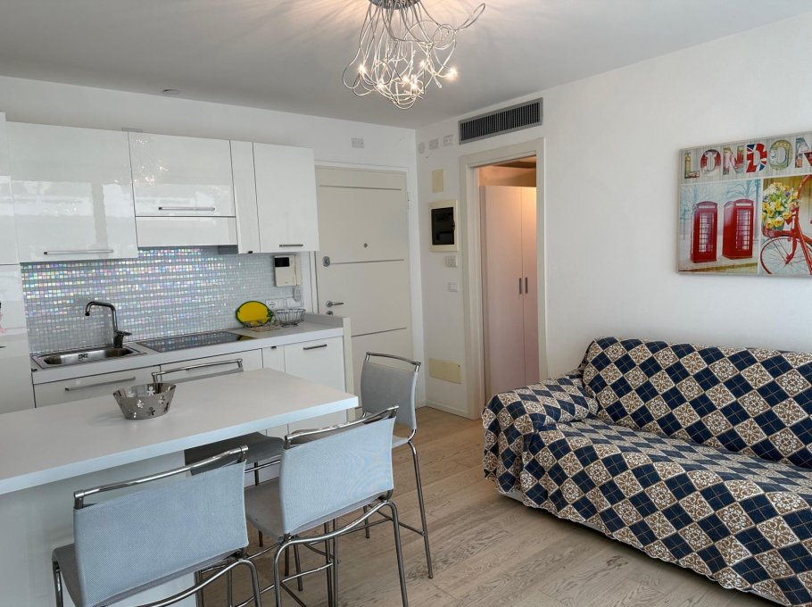 Very comfortable, well-furnished apartment in a building with a modern design, located in the center of Lignano Sabbiadoro, in via Marina, about 150 meters from the beach, in the direction of the beach offices 7 and 8. It is composed of a bedroom with double bed, living room (where there is a double sofa bed) with kitchenette with induction hob, bathroom with box shower and window, large east-facing terrace. The apartment also has air conditioning, washing machine, dishwasher and numbered parking space inside the building.