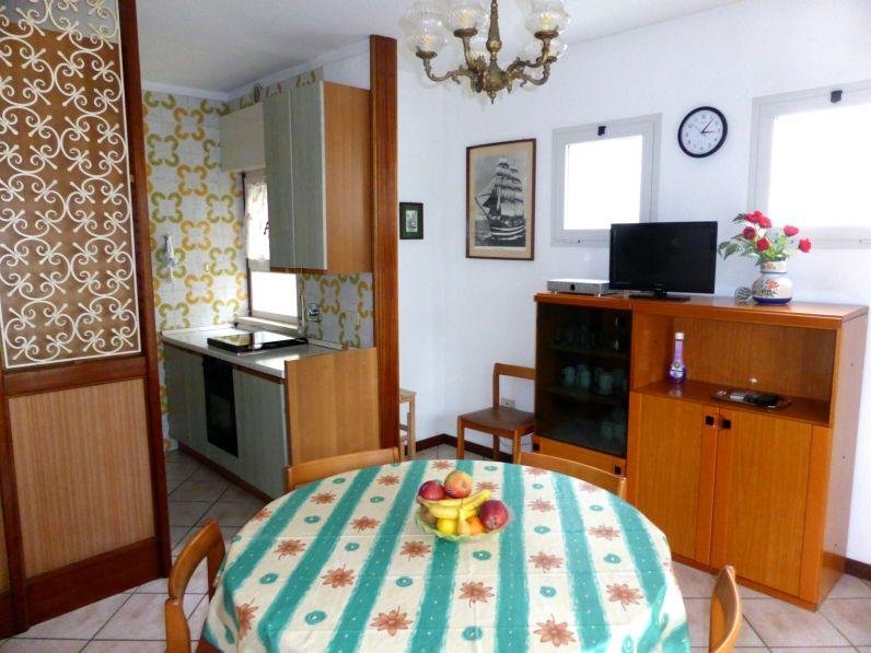 Appartamento al piano terra, composto da cucinotto finestrato con 4 fuochi gas, forno elettrico, lavastoviglie, frigo con congelatore; soggiorno con divano e tv satellitare, camera matrimoniale con bagno privato con box doccia, camera con 2 letti singoli o matrimoniale, camera con letto a castello, bagno con box doccia e phon, 2 ampi terrazzi , dove si puo’ mangiare all’aperto, aria condizionata, cassaforte e lavatrice.