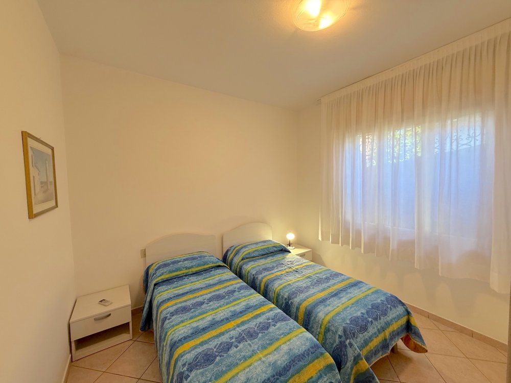 Partially renovated semi-detached villa with an enclosed garden and a covered terrace with a fireplace; entrance hall leading to a living room with a double sofa bed and direct access to the terrace, separate kitchenette, 1 double bedroom with an en-suite bathroom, 2 twin bedrooms, bathroom with shower cubicle