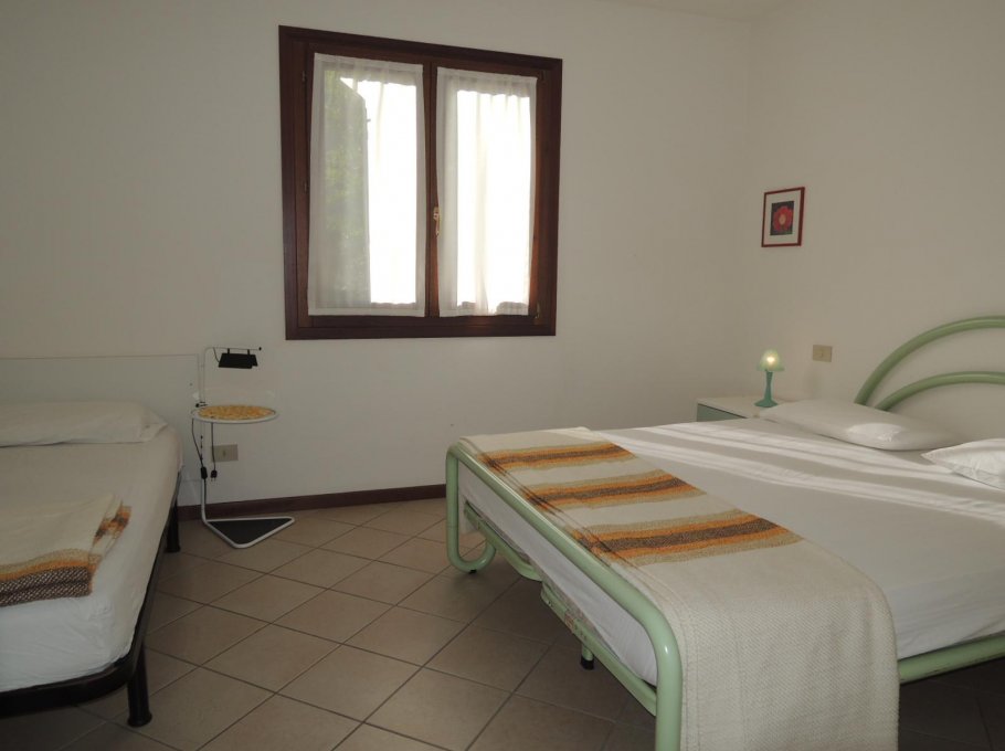 Conpfortable Apartment on ground floor, composed by one bedroom with a double bed and a single bed and one bedroom with 2 beds, kitchen/livingroom with sofa, bath with a box shower and garden. Air conditioning on request (extra to pay) €. 35,00 each week.