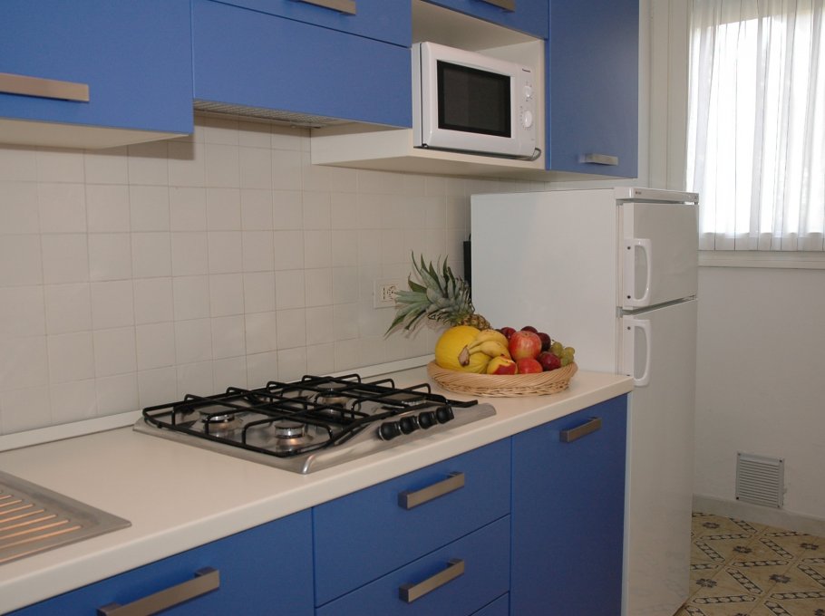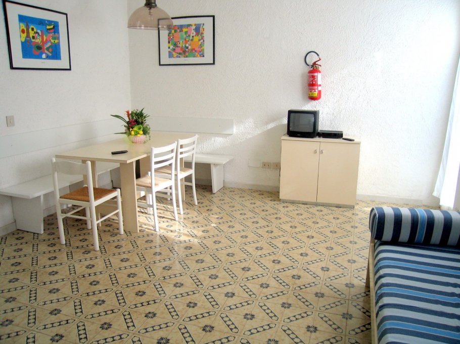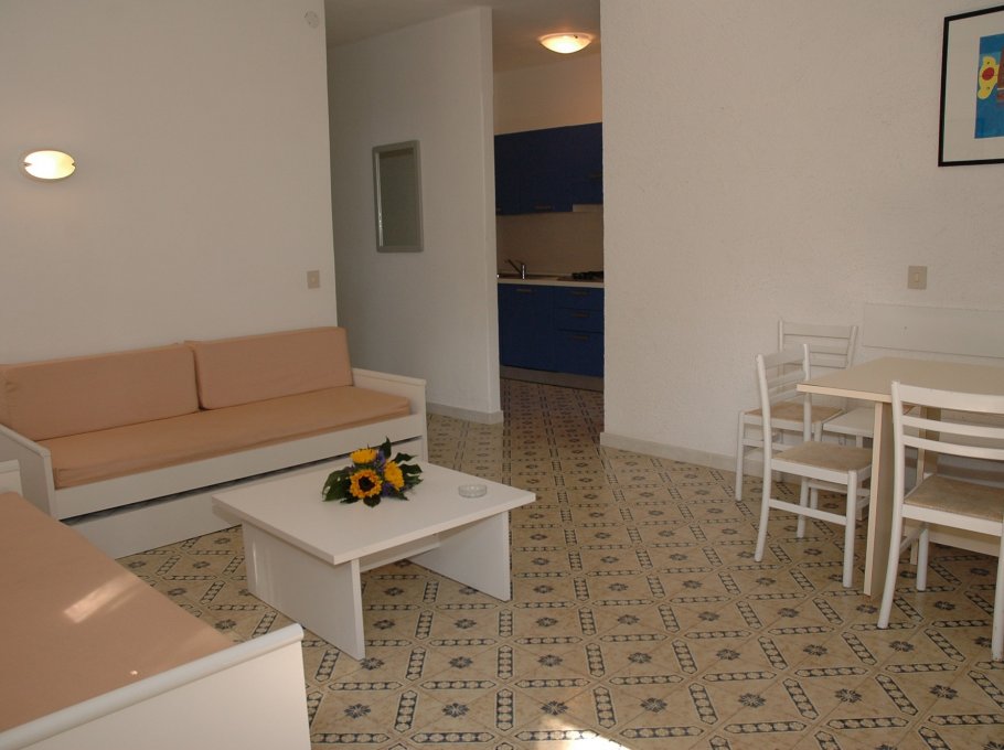 Spacious apartment with large dining room with two sofa-bed, a kitchenette with refrigerator and freezer, dishwasher and microwave. There are a double bedroom and a twin room, one bathroom with shower box. The appartment hosts 6 people, children included. Common garden, furnished with outdoor table and chairs.