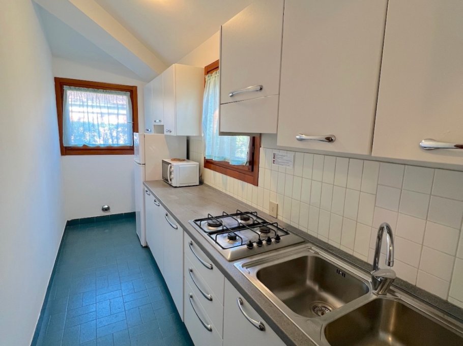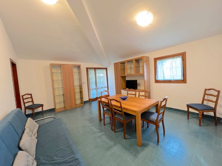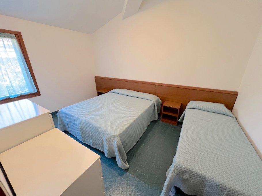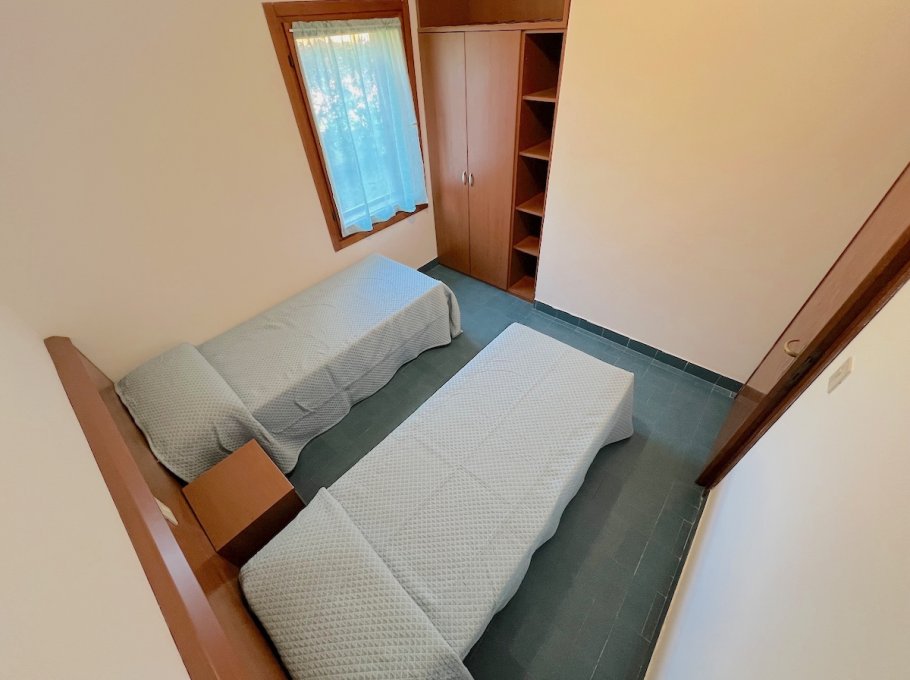 Spacious living room with 1 double sofa bed, direct access to the covered patio with table and chairs, separate kitchenette, 1 bedroom with double bed plus a single bed and windowed bathroom with shower box, 1 twin bedroom, 1 triple bedroom (6/9 beds). Garden 1 covered parking space.