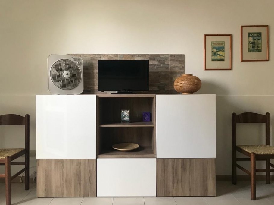 NEW 2025: Kitchen. Villa Nadia, a charming villa in a quiet area near the Punta Faro tourist port, a few steps from the Darsena Vecchia and the private beaches: Doggy Beach, Bau Beach. The Villa consists of two fenced apartments on the ground floor, suitable for your small pet.