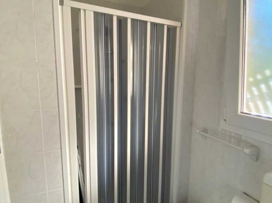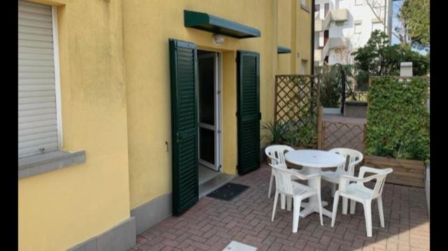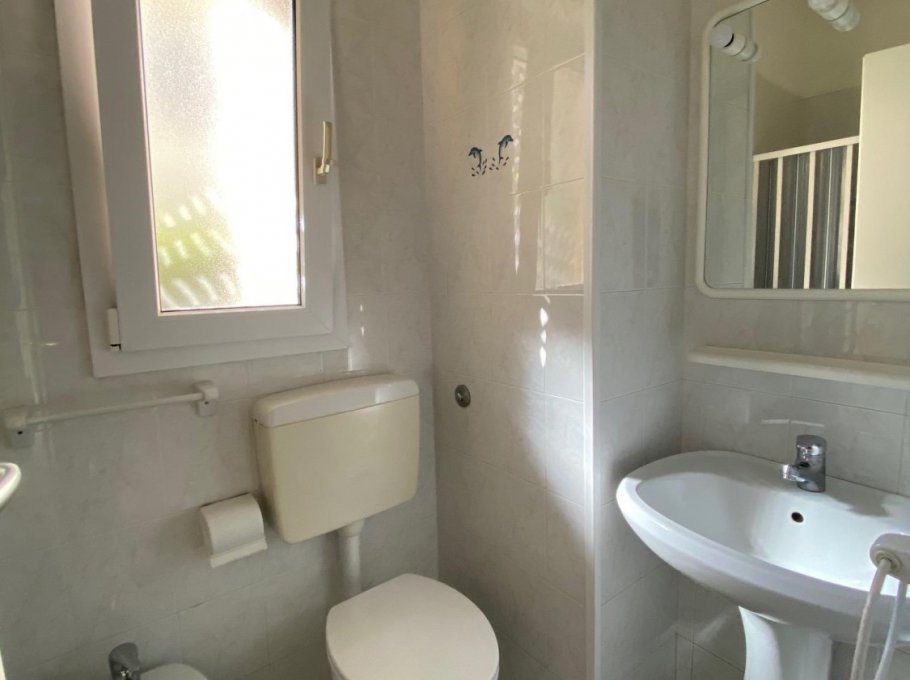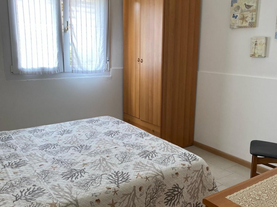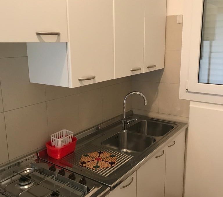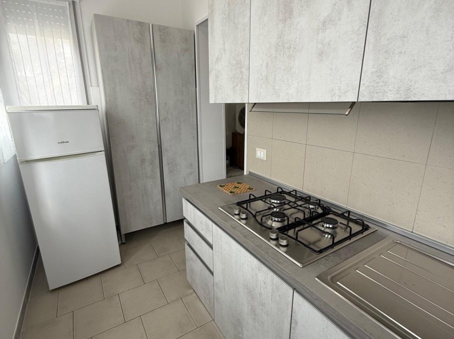NEW 2025: Kitchen. Apartment with private fenced garden, consisting of a double bedroom, living room with sofa bed, bathroom with shower and bidet. Air conditioning.