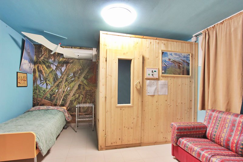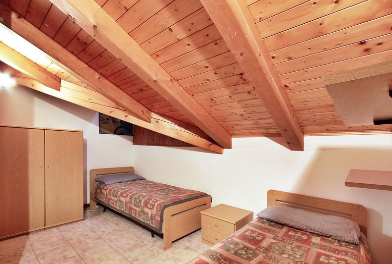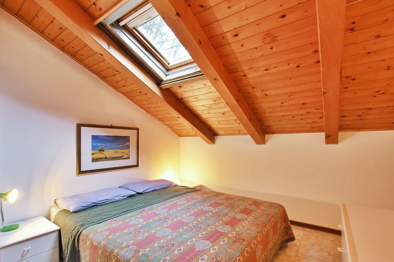 Semidetached house with: in the mezzanine floor living room with kitchenette and double sofa bed, double room with balcony, windowed bathroom with box shower. At the mansard 1 double room, 1 little room with 2 single beds, toilette with window.. On the ground floor kitchenette, bathroom with shower, 1 room with sauna and 1 slepping place. Fenced garden, patio with fireplace. TV, mosquito-nets, sauna, air conditioning, washing machine, dishwasher, oven WI-FI,
