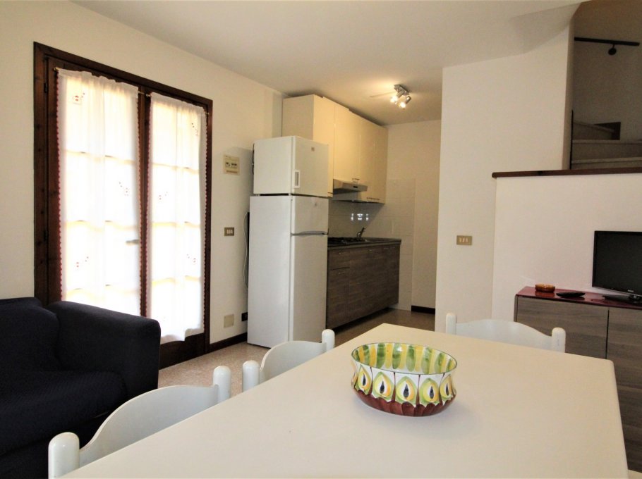 Type C: on the garden level living-dining room with cooking corner, 1 little bathroom, little patio with garden furnishings and fireplace, external shower; on the first floor 1 double bedroom, 1 bathroom with shower, balkony; on the second floor bedroom with 3 single beds, balcony. For 5 people. TV - Wasching machine - air conditioning unit. Energy class G (223.04 kWh/sq m year). CIN: IT030049C2DMK9NLFP