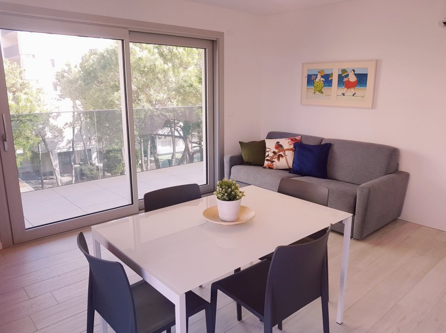 Modern condominium of very recent construction, inaugurated in 2020, located in Lignano Sabbiadoro, via Carinzia, 46, a stone’s throw from the beach (about 60 meters); in the immediate vicinity shops, restaurants, bars and pizzerias; few steps to reach the city center for shopping or to enjoy the night of Lignano.