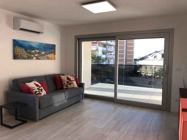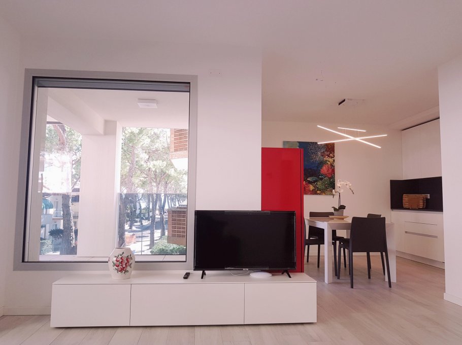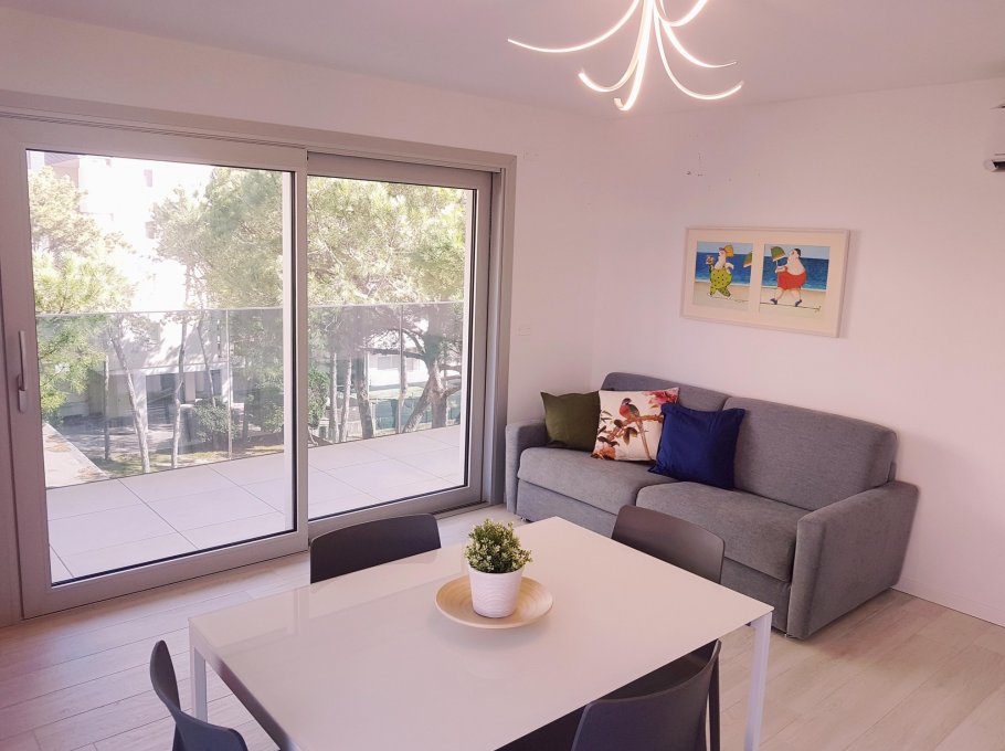 Modern condominium of very recent construction, inaugurated in 2020, located in Lignano Sabbiadoro, via Carinzia, 46, a stone’s throw from the beach (about 60 meters); in the immediate vicinity shops, restaurants, bars and pizzerias; few steps to reach the city center for shopping or to enjoy the night of Lignano.