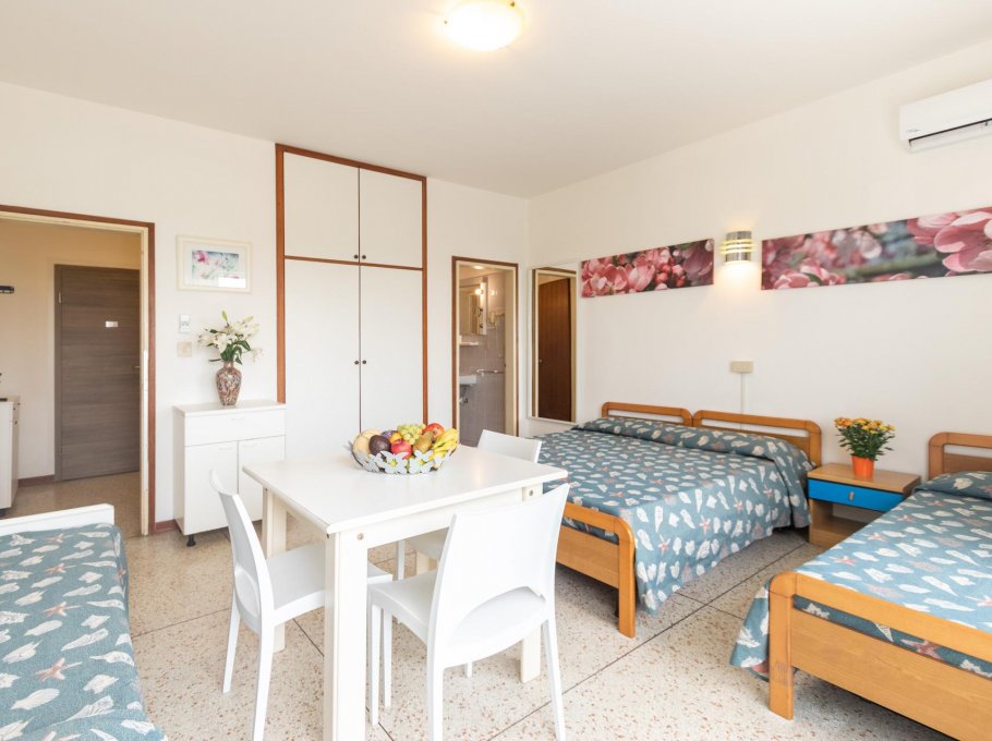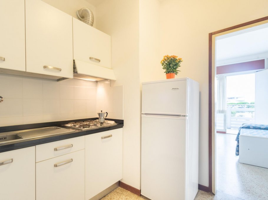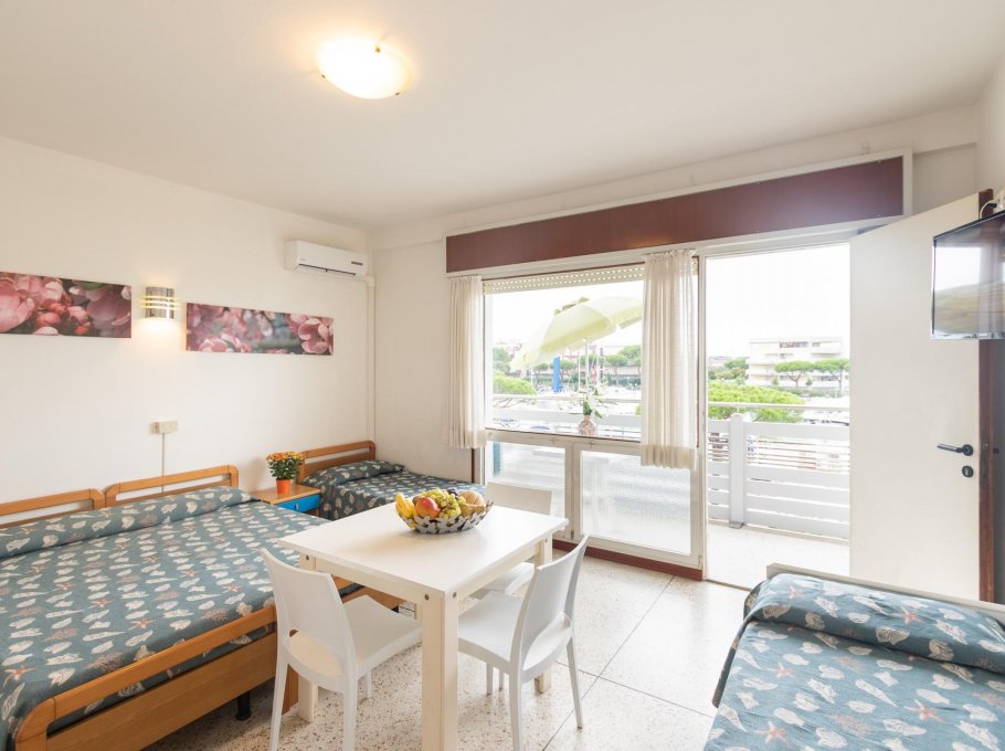 Apartment for 4 persons in Yachting residence , viale Italia 70, Lignano Sabbiadoro , 350 mt from the beach, 250 mt from the center. Apartment is composed by entrance hall with kitchenette, room with double bed and 2 single beds, bathroom with shower box, terrace, tv and wifi