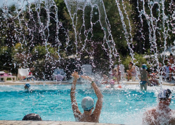 The aquatic park has been enlarged in July 2020. At our guests disposal: two water slides, a new whirlpool area, a slow river and a new children’s play area, which of course are all heated.