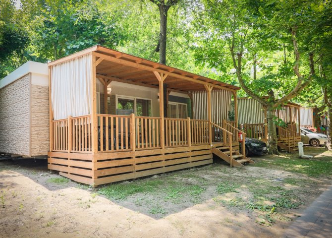 The mobile home wood for 2+2 persons measures 18m2 and can host up to 4 persons.