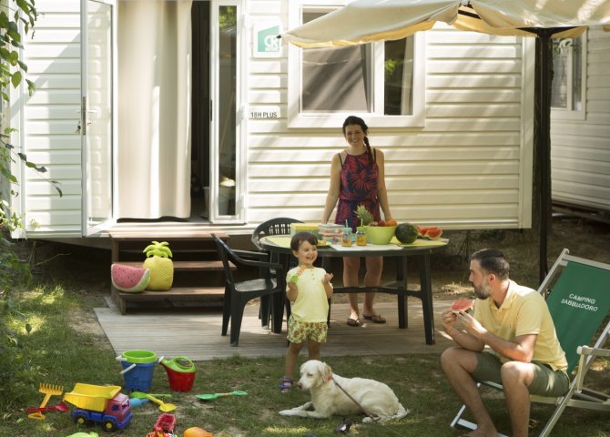 The new mobilhome Sunshine for 4+2 persons is about 32 smq and it’s suitable for up to 6 people.