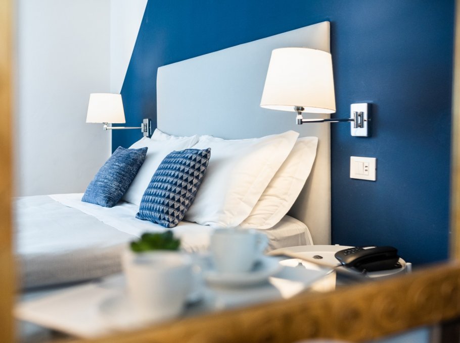Camera con servizi, telefono, TV-sat, climatizzatore e cassaforte, phon. Con terrazzino.