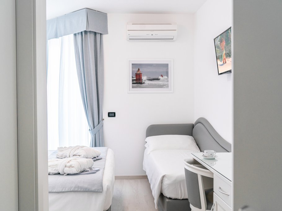 Wir hatten nur Zimmer mit Frühstück, das sehr gut war. An der Sauberkeit unseres sehr kleinen Zimmers - für den Preis jedoch in Ordnung - war nichts auszusetzen. Lediglich die Betten waren bretthart. Wir hatten im 4. Stock einen wunderbaren Meerblick mit einem kleinen Balkon.