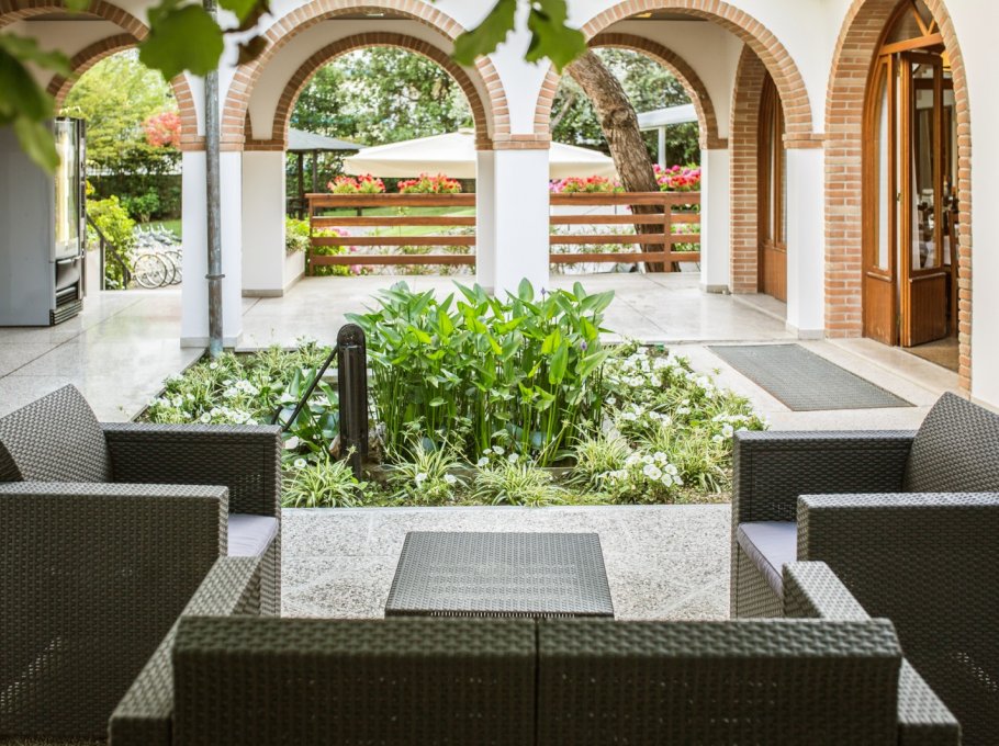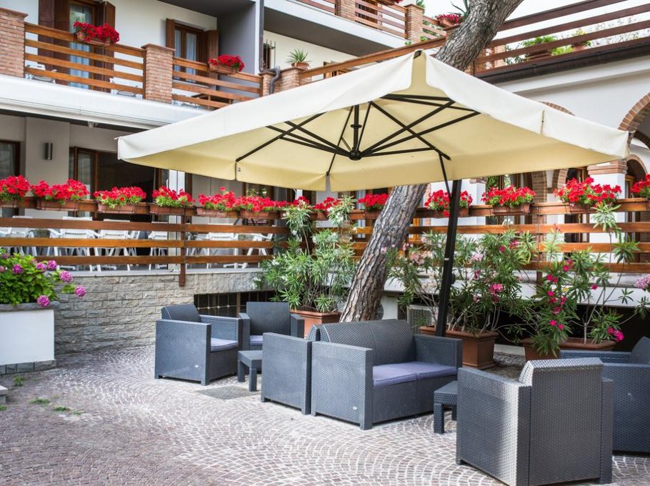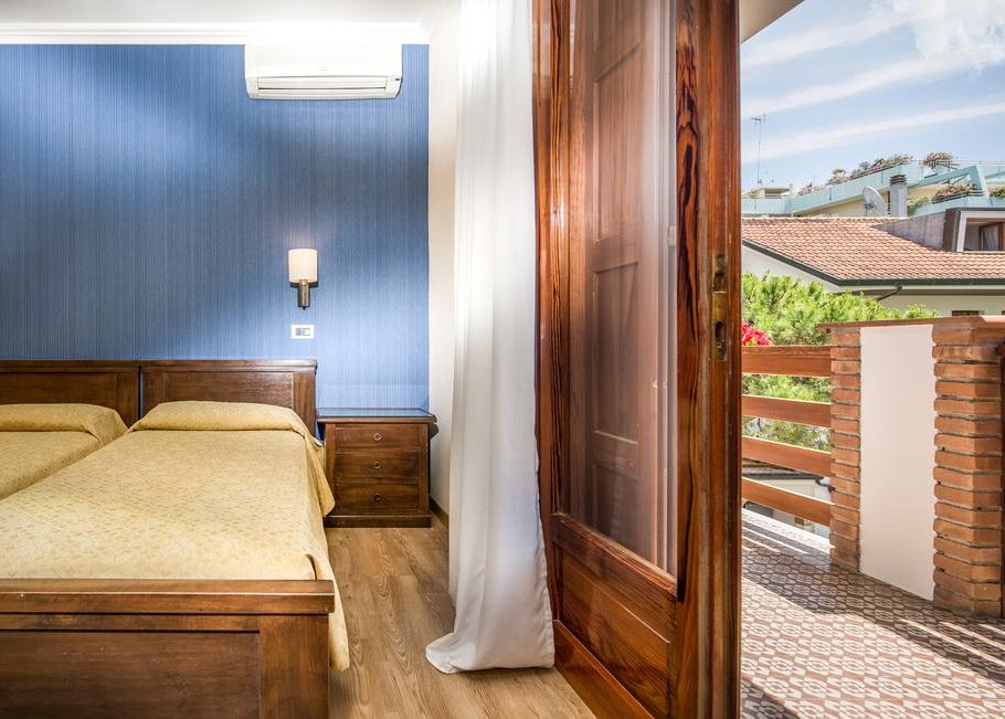 "Albergo Capanna d'Oro" belongs to the Caoduro family since 1954. It lays in a broad garden, and it is located on the street that runs along the beach of Lignano Sabbiadoro. Although sited downtown, you'll find quiet and relax in our roomy bedrooms, all equipped with full bathroom, AC, Satellite TV, telephone and safe.