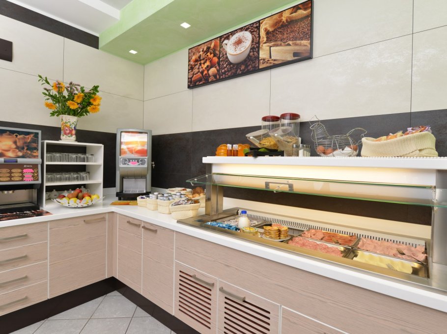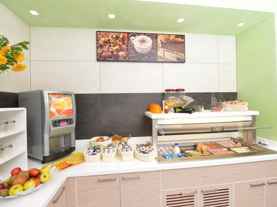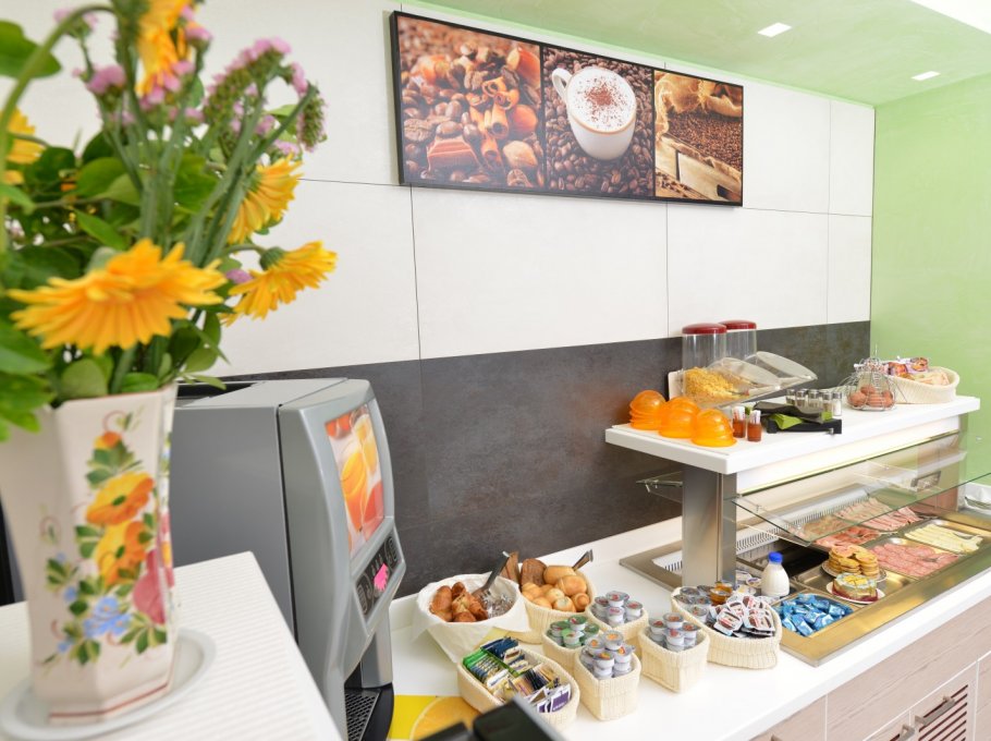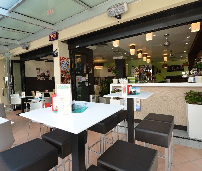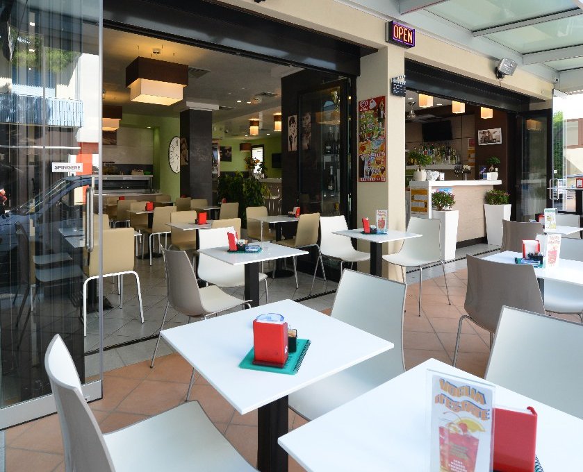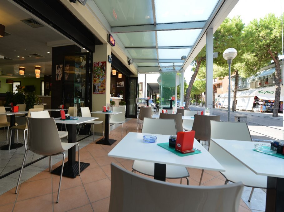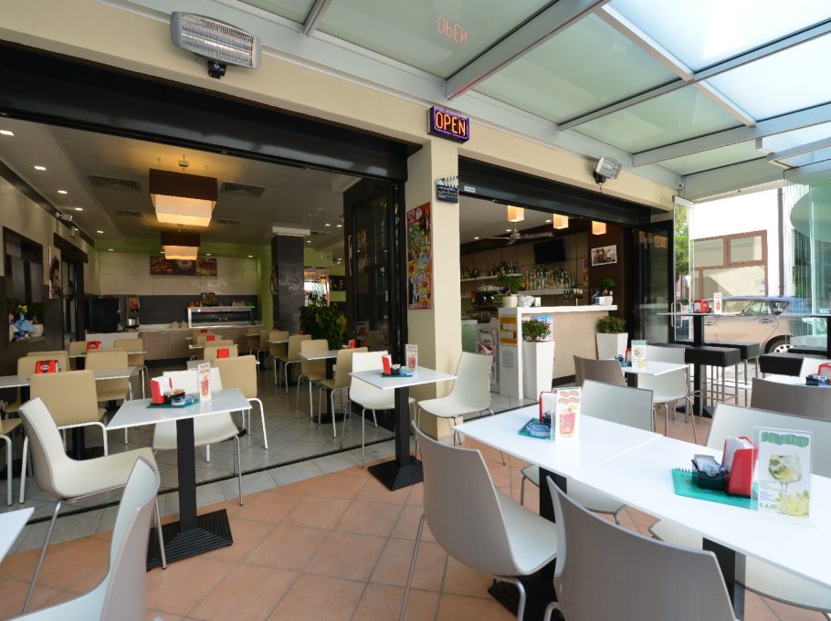 In the morning, our lavish buffet will spoil your palate with warm brioches, appetizing sliced salami and all that you need to start your day. We are at your disposal to satisfy the fussiest wishes with a smile. Smokers and not smokers can enjoy the fresh air on our patio with a view of the pedestrian promenade. At any time of the day we are waiting for you at our bar, open from 8 o'clock in the morning until late at night. Here you can enjoy good coffee, refreshing ice cream or warm chocolate and after the beach, an aperitif with friends... Then before going to sleep stop by and join us for multicoloured cocktails, good music and friendly service.