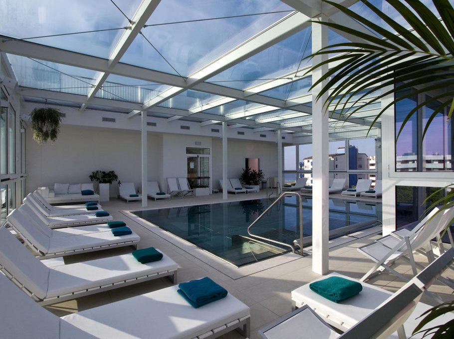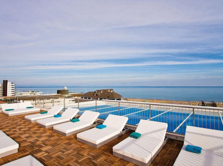 Besides the facilities that Lignano puts at your disposal, the hotel offers various leisure opportunities: on the 6th floor, in the indoor wellness area: steam bath, sauna, relax zone and a small fitness centre; on the 7th floor, indoor heated swimming pool with whirlpool; lounge bar for small lunches. On the 8th floor, a panoramic sundeck with complimentary use of sun loungers. Towels for the swimming pool and wellness centre are provided.
