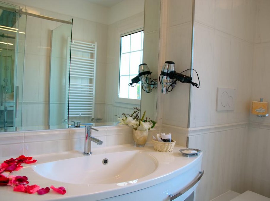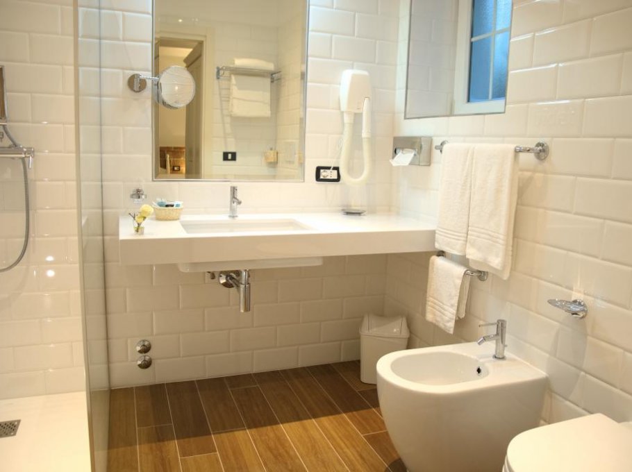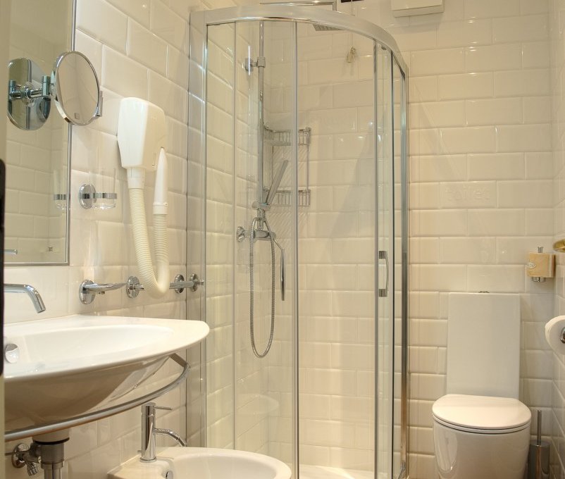 Double room of 17 sqm elegantly furnished and equipped with LCD satellite TV, minibar, safe, telephone, air conditioning and heating, bathroom with shower, hairdryer, makeup mirror.