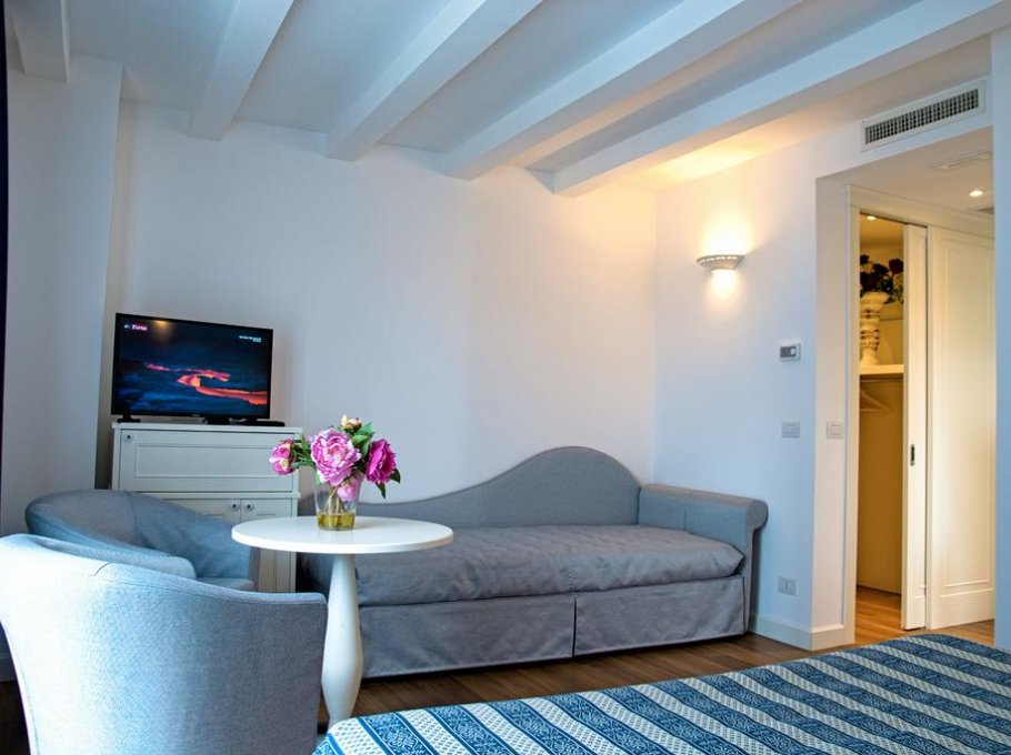 Double room of 19 sqm elegantly furnished and equipped with LCD satellite TV, minibar, safe, telephone, hair dryer, air conditioning and heating.