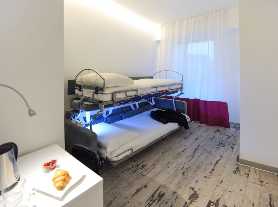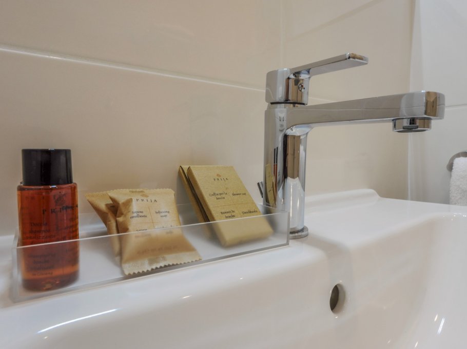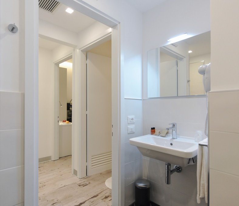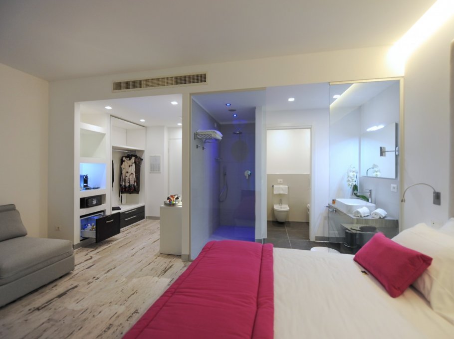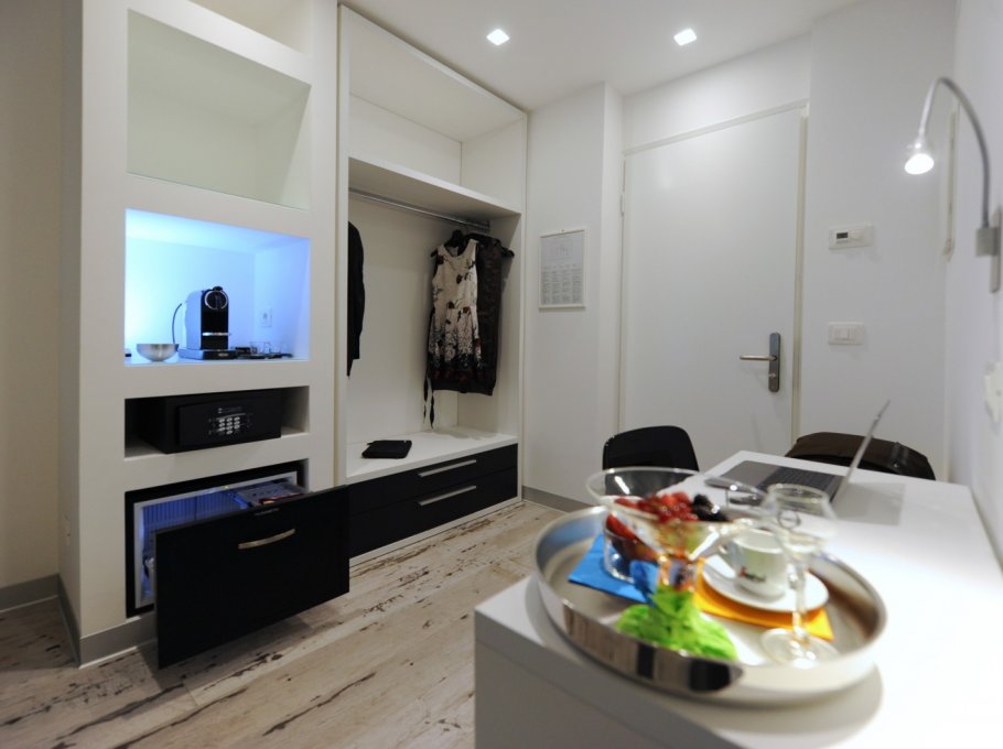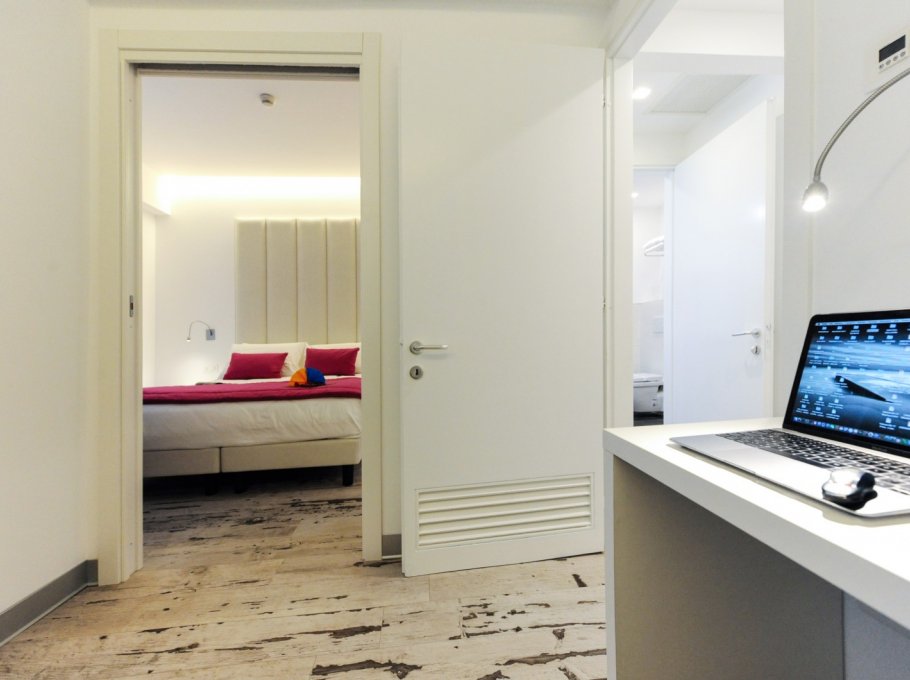 Ciascun complemento delle camere è disegnato su misura, con arredo in stile contemporaneo, adatto alla clientela più esigente.