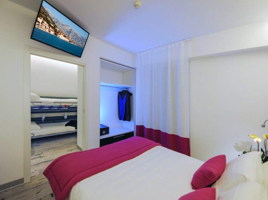 Composed by 1 room with double bed and 1 room with bunk bed, bathroom with box shower, WC, hairdryer, telephone, tv, safety box, air conditioning and balcony