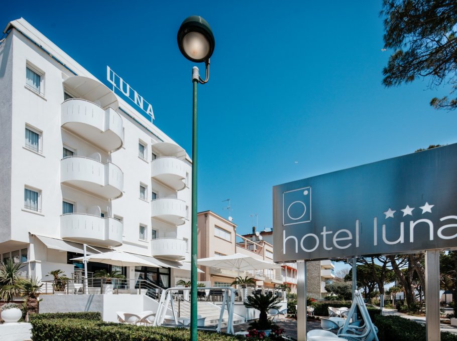 The Hotel Luna enjoys a splendid position, looking out over the waterfront and beach, with easy access to the city centre and an ample shaded garden. Your comfort is guaranteed with the new furnishing, lifts, air conditioned rooms, American style bar, restaurant, children area and free Wi-Fi. The restaurant offers a large selection of genuine typical local cuisines and wines.