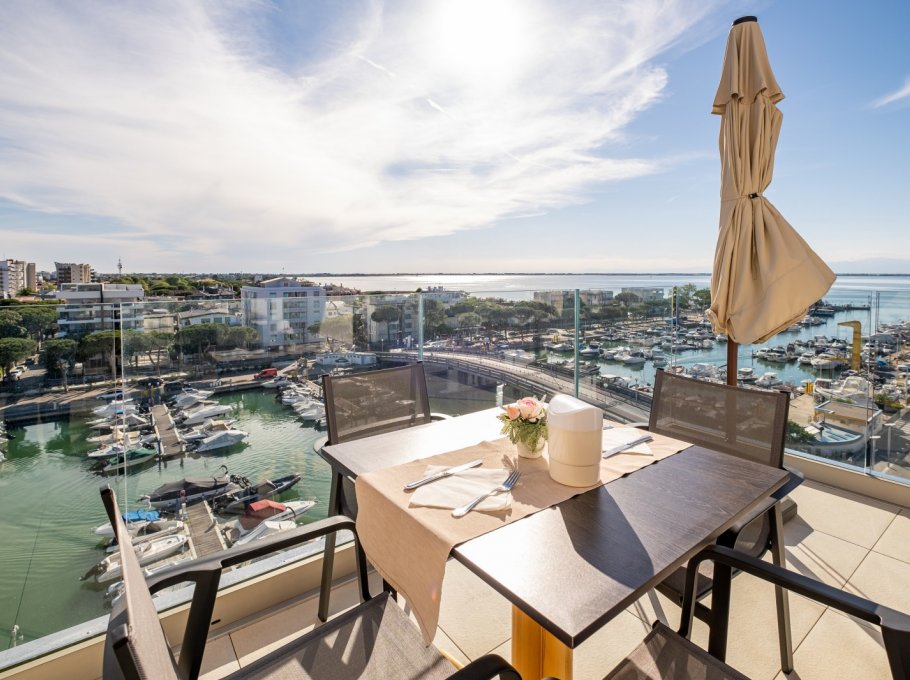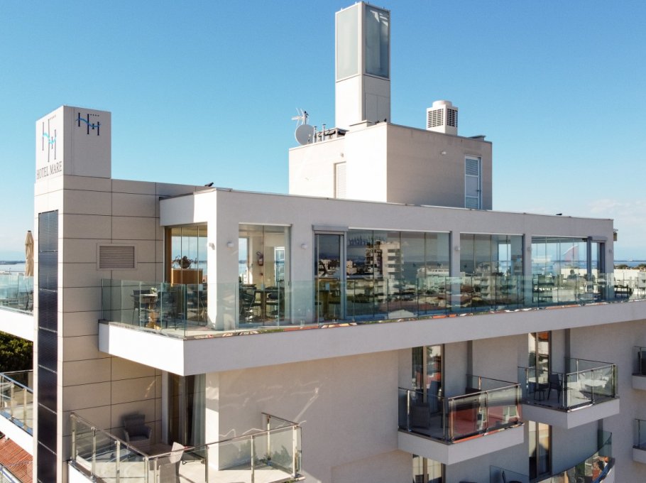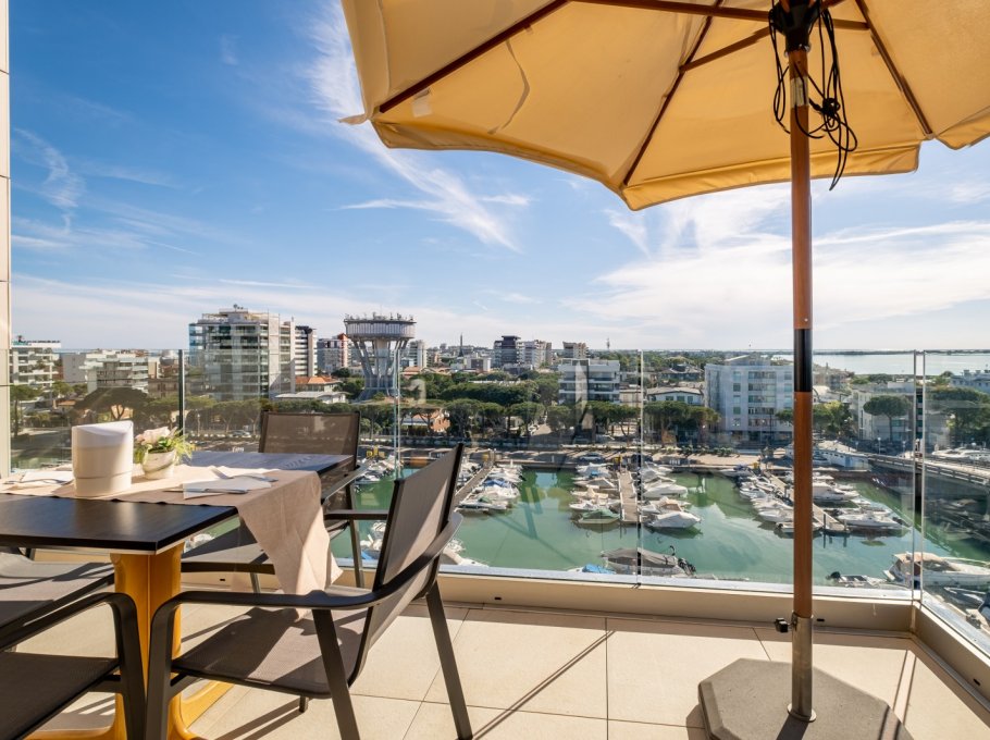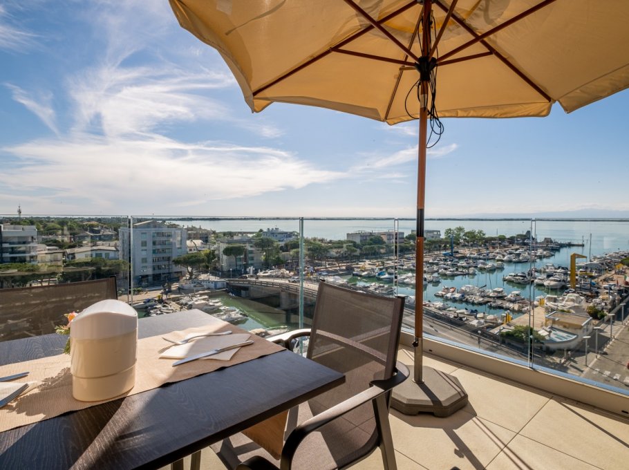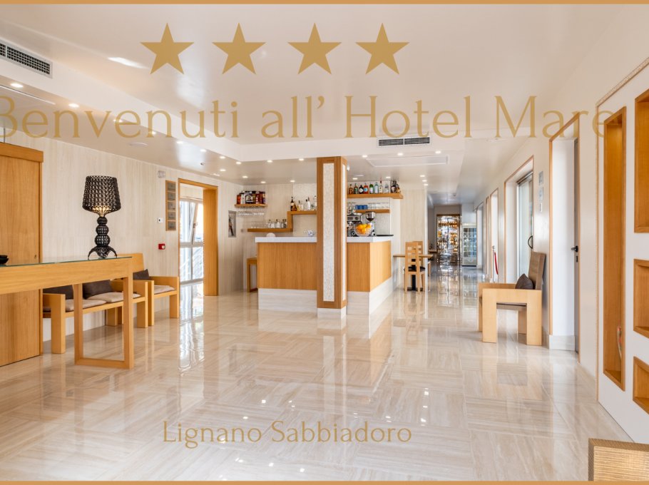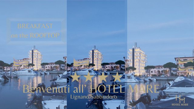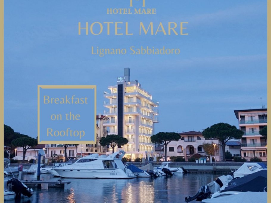 Hotel Mare **** is located in the heart of Lignano Sabbiadoro in front of the Porto Vecchio dock, a few meters from the beach and the pedestrian area with its trendy shops and clubs, the modern lines distinguish its architecture that enclose the rooms & suites furnished with taste the Buffet Breakfast is served on the 7th floor with a spectacular 360 ° view of the Port, the Lagoon and the Sea, the professionalism and kindness of the staff complete the comfort of the Hotel.