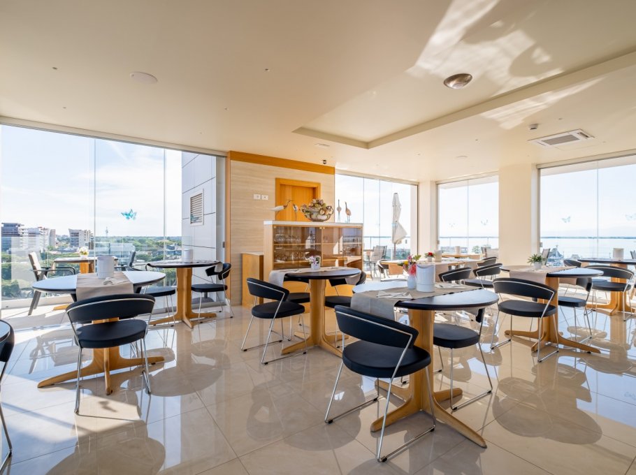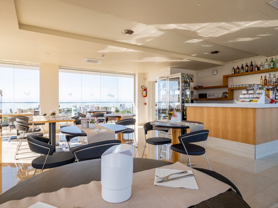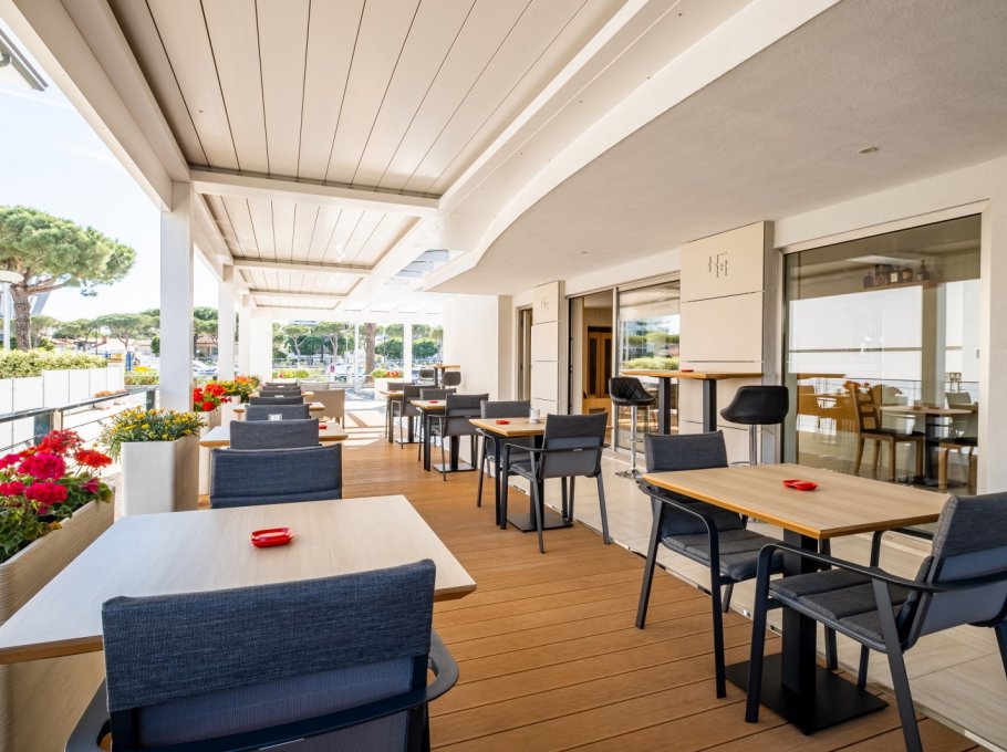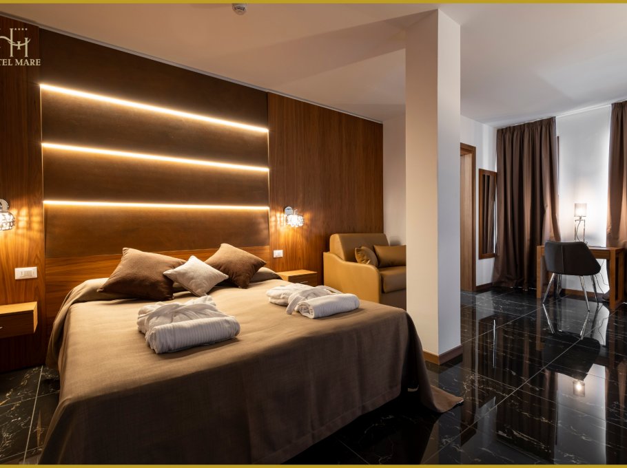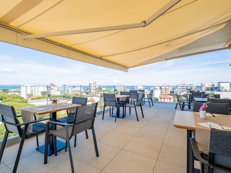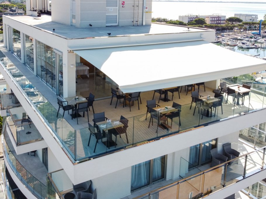 Hotel Mare **** is located in the heart of Lignano Sabbiadoro in front of the Porto Vecchio dock, a few meters from the beach and the pedestrian area with its trendy shops and clubs, the modern lines distinguish its architecture that enclose the rooms & suites furnished with taste the Buffet Breakfast is served on the 7th floor with a spectacular 360 ° view of the Port, the Lagoon and the Sea, the professionalism and kindness of the staff complete the comfort of the Hotel.