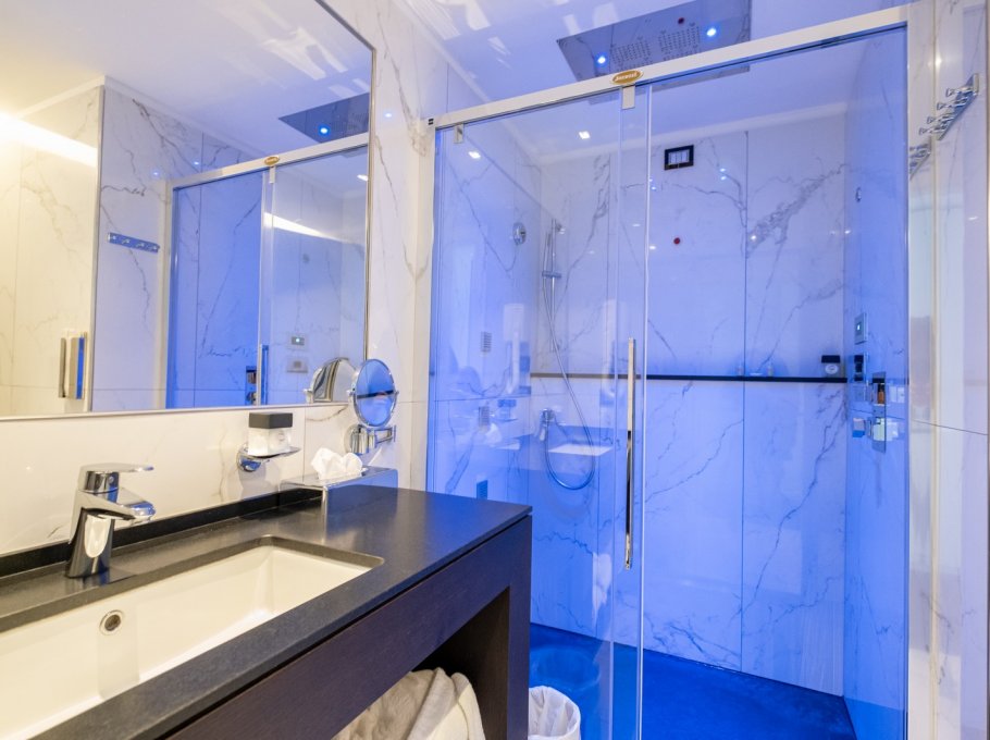 Bathroom with emotional shower box, chromotherapy, aromatherapy (Jacuzzi), music.