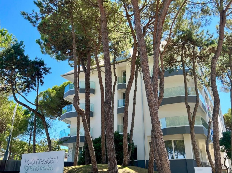 The President Hotel is a four star hotel located in a quiet and green park of pine trees in Lignano Riviera. The restaurant and bar service is provided both in hotel and at the pool.
