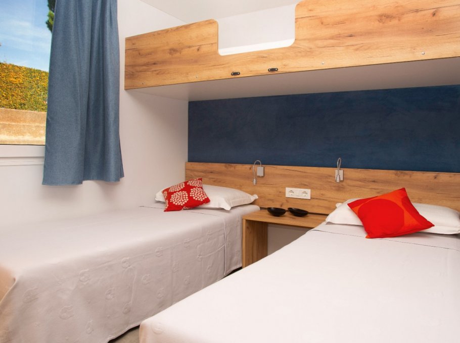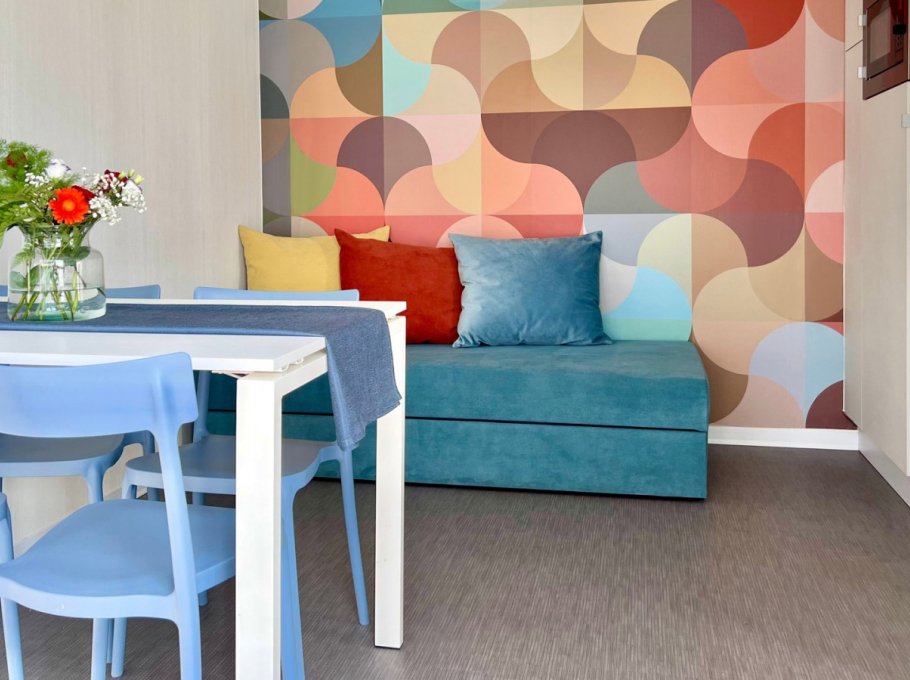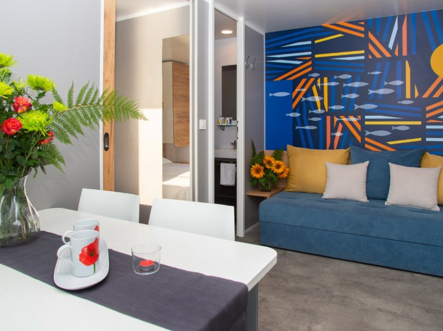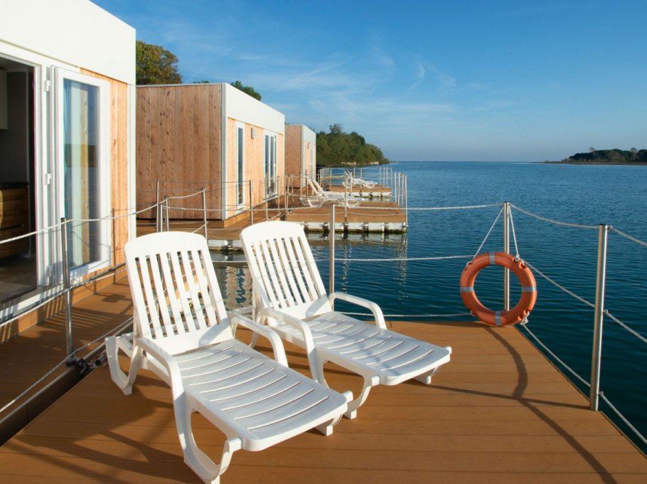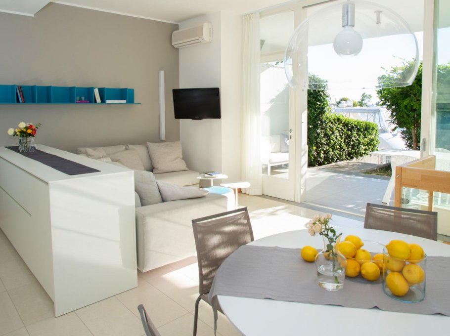 The detached villas in the garden of the hotel offer four to six beds, two to three rooms, living-kitchen area with dish washer, bathroom with bath tub and phone, tv with 26 inch Lcd/Led screen made by Philips, air conditioning and heating system, safe, terrace and garage. You have the option to use the restaurant service for breakfast as well as lunch and dinner. Lunch and dinner have a menu à la carte. Little pets are welcome. The indicated price is a weekly rate for rent only. Check in time is Sunday starting at 3 p.m., check out time is as well on Sunday at 9 a.m. at the latest.
