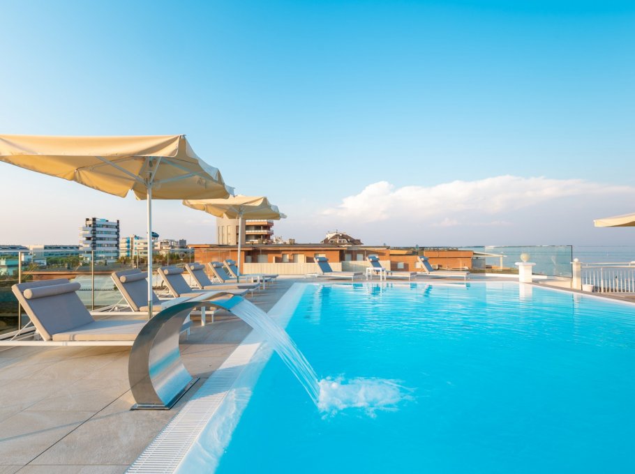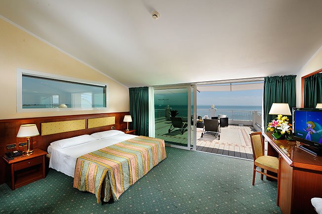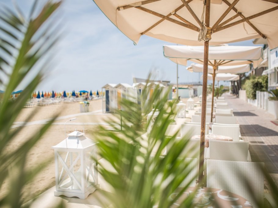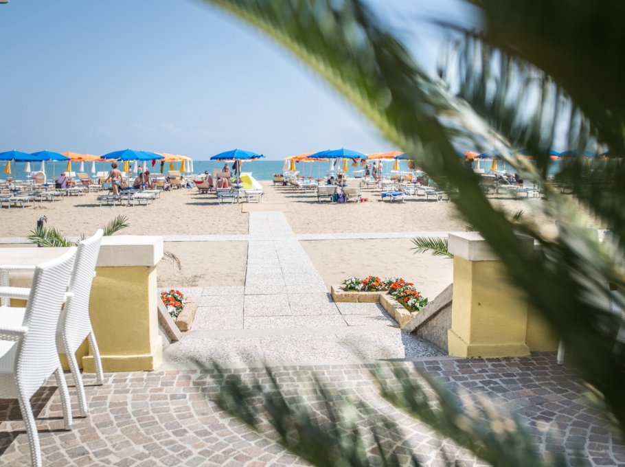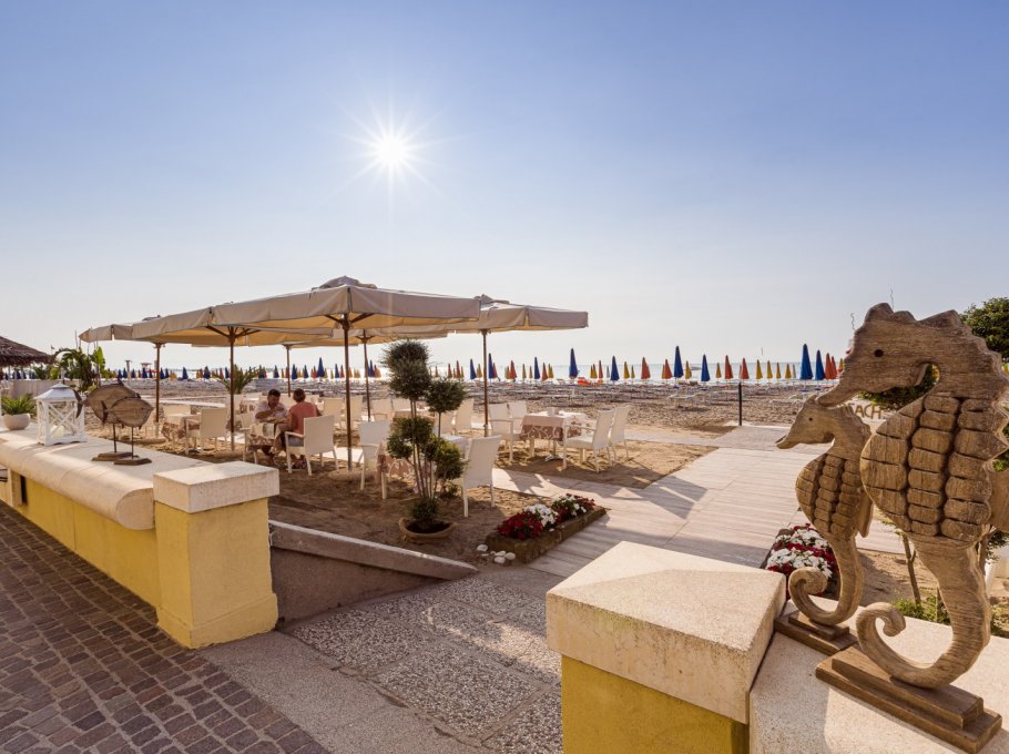 Located in the eastern part of Lignano Sabbiadoro, a renowned sea-side resort of the northern Adriatic Sea, the hotel is in an extremely quiet position, directly on the sea and on its private beach.